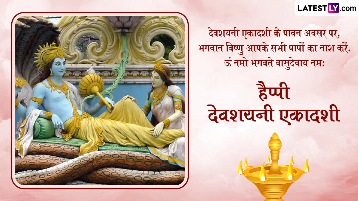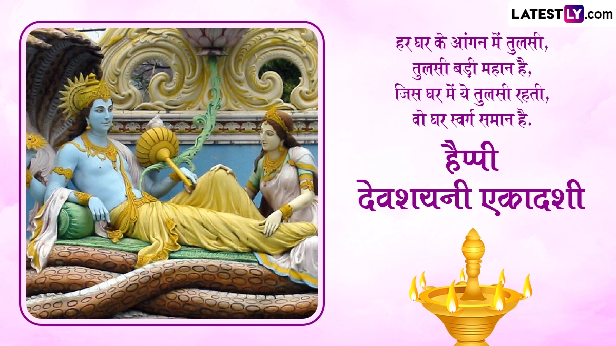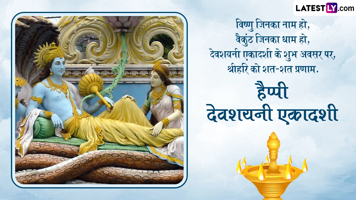देवशयनी एकादशी को आषाढ़ी एकादशी, हरिशयनी एकादशी और पद्मनाभा एकादशी जैसे नामों से जाना जाता है, जिसका हिंदू धर्म में काफी महत्व बताया जाता है और इस दिन भगवान विष्णु-माता लक्ष्मी की पूजा की जाती है. इस व्रत से जीवन में सुख-समृद्धि के साथ ही खुशहाली का आगमन होता है. इस अवसर पर आप इन हिंदी मैसेजेस, वॉट्सऐप विशेज, फेसबुक ग्रीटिंग्स और कोट्स के जरिए प्रियजनों से हैप्पी देवशयनी एकादशी कह सकते हैं.