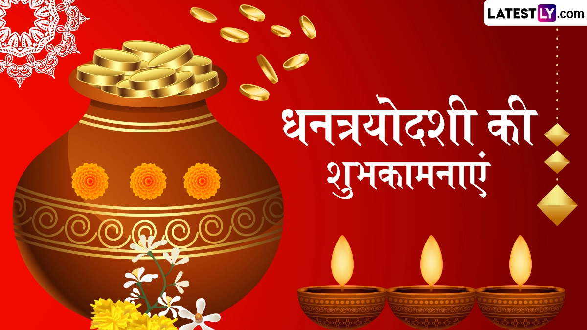 Dhanteras 2024 Greetings: दीपोत्सव (Deepotsav) यानी जगमगाते दीयों के पर्व दिवाली उत्सव (Diwali Utsav) को पांच दिनों तक मनाया जाता है, जिसकी शुरुआत धनतेरस (Dhanteras) के साथ होती है और समापन भाई दूज (Bhai Dooj) के साथ होता है. हिंदू पंचांग के अनुसार, हर साल कार्तिक मास के कृष्ण पक्ष की त्रयोदशी तिथि को धनतेरस का त्योहार मनाया जाता है और यह तिथि इस साल 29 अक्टूबर 2024 को पड़ रही है. इस दिन प्रदोष काल में लक्ष्मी-गणेश, कुबेर और धन्वंतरि की पूजा की जाती है. इसके साथ ही इस दिन सोने-चांदी के आभूषणों के साथ-साथ धातुओं के बर्तन खरीदे जाते हैं. मान्यता है कि इसी पावन तिथि पर समुद्र मंथन के दौरान देवताओं के वैद्य और आरोग्य के देवता भगवान धन्वंतरि का प्राकट्य हुआ था, इसलिए इस दिन धन्वंतरि जयंती (Dhanvantari Jayanti) भी मनाई जाती है.