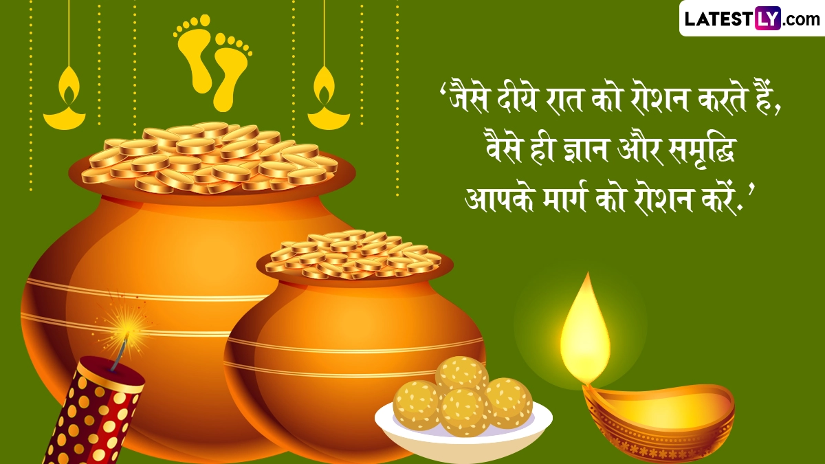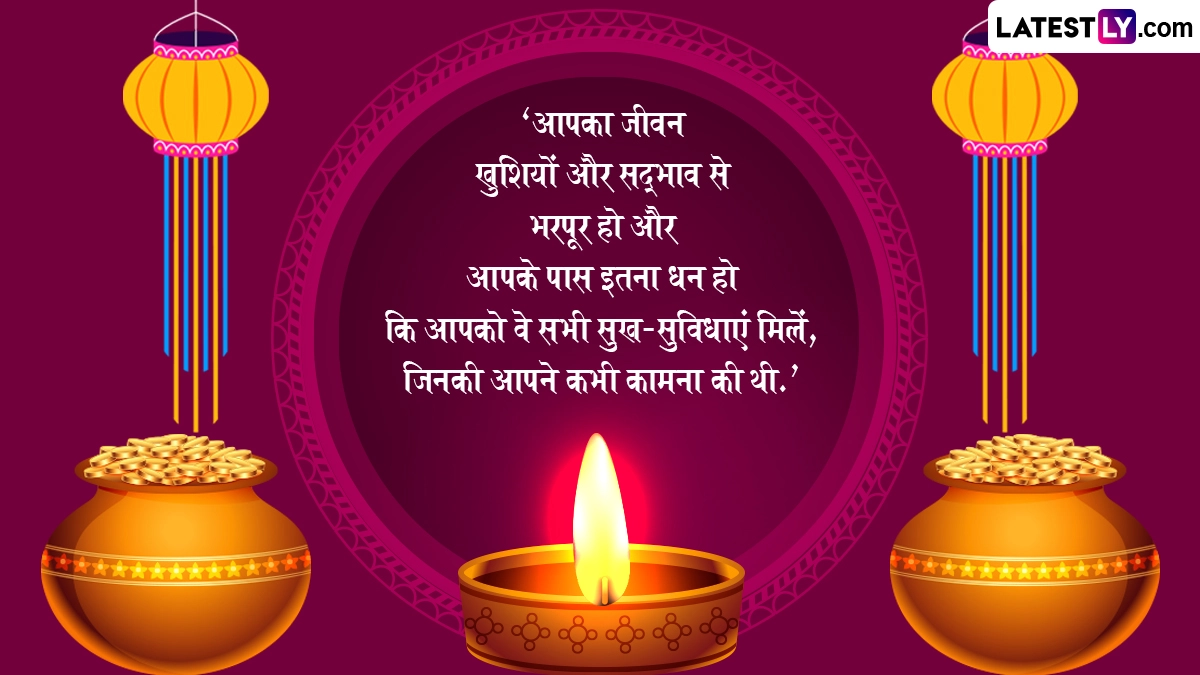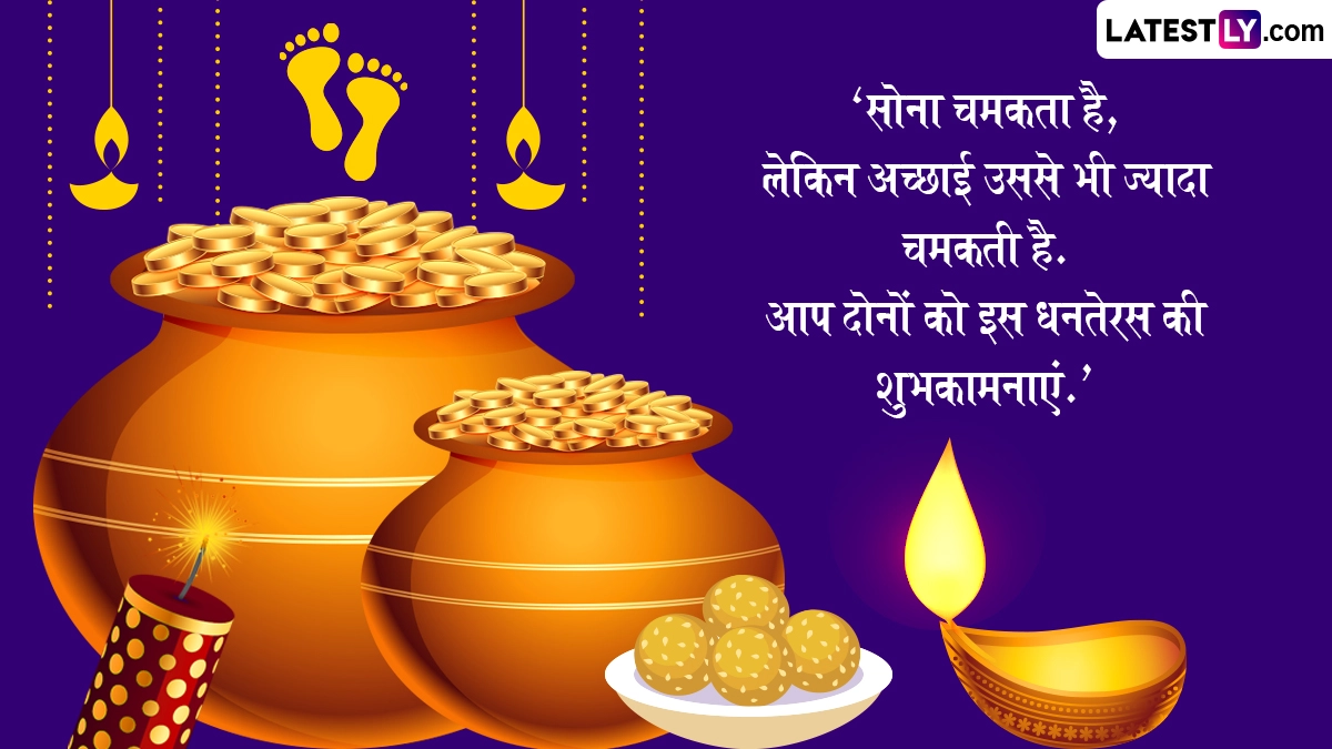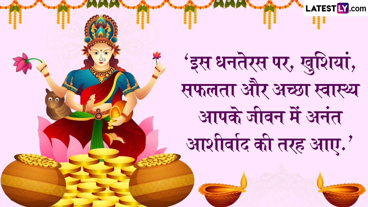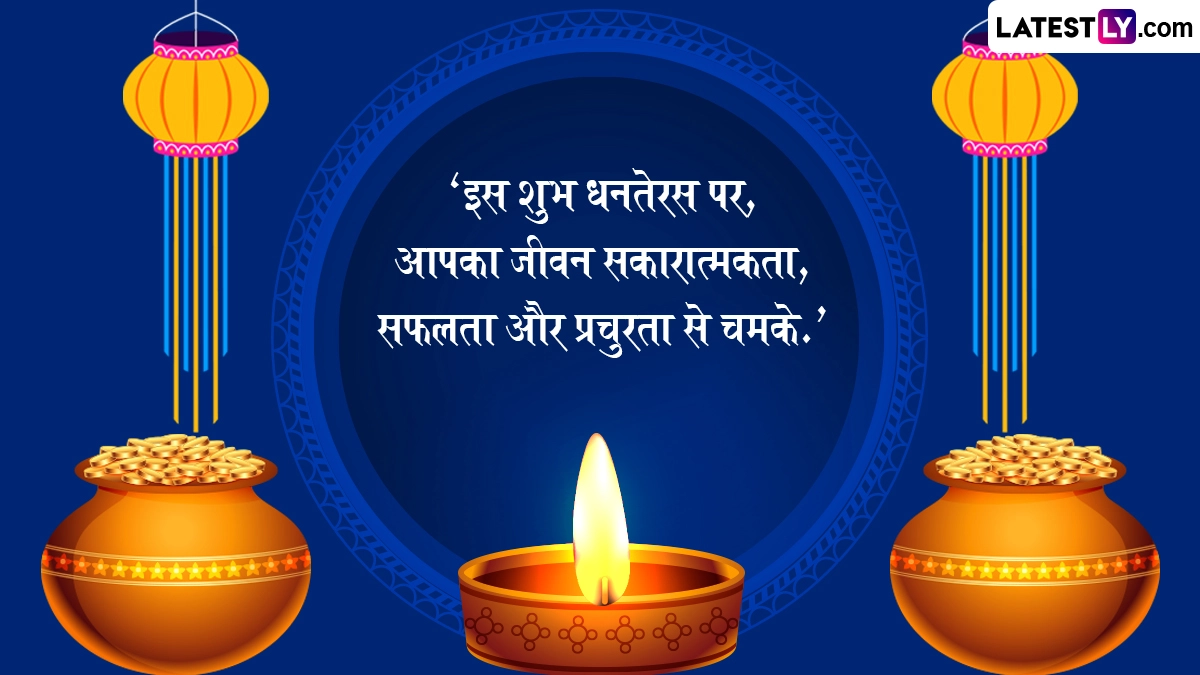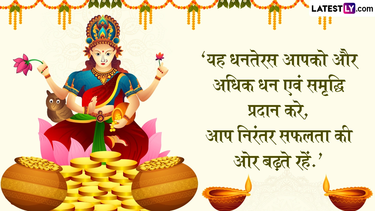 Dhanteras 2025 Quotes: पांच दिवसीय दीपावली (Deepavali) का पहला पर्व यूं तो धनतेरस (Dhanteras) के नाम से मनाया जाता है, लेकिन धन तेरस पर विभिन्न रस्म-रिवाजों का पालन करना होता है. इस दिन देवी लक्ष्मी की पूजा-अर्चना जहां भक्त के जीवन सुख समृद्धि लाती है, वहीं आयुर्वेद के देवता धन्वंतरि की पूजा शरीर को सेहतमंद और दीर्घायु बनाती है. इसी दिन की विशेष शुभता को देखते हुए लोग सोना, चांदी और महंगी वस्तुएं आदि खरीदते हैं. इस वर्ष 18 अक्टूबर 2025 को धनतेरस का पर्व मनाया जाता है. धनतेरस की विभिन्नता को देखते हुए आइये अपने इष्ट-मित्रों को रस्मों के अनुरूप कोट्स एवं शुभकामनाएं भेजकर इस पर्व को सेलिब्रेट करें. यह भी पढ़ें: Dhanteras 2025 Sanskrit Wishes: शुभ धनत्रयोदशी! संस्कृत के इन Shlokas, WhatsApp Messages, Facebook Greetings के जरिए दें बधाई