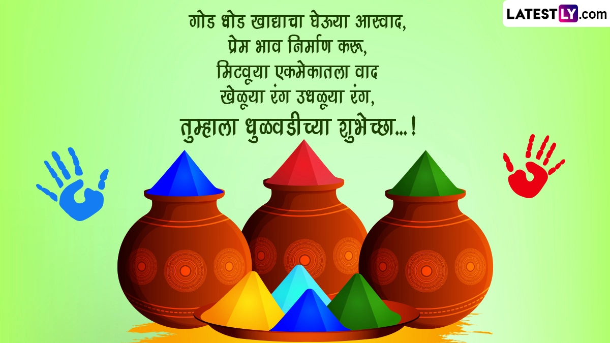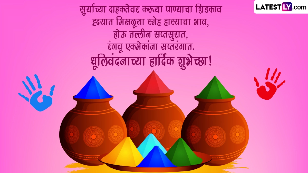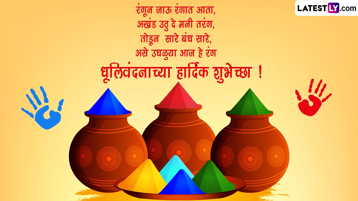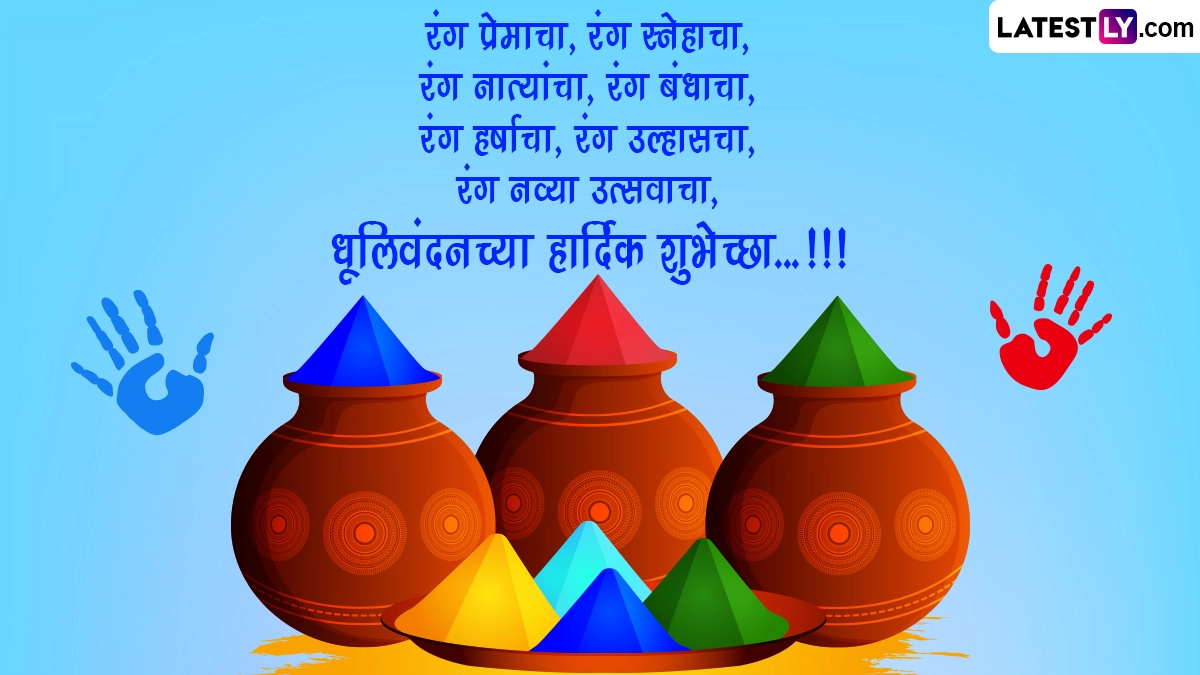 Dhulivandan 2024 Messages In Marathi: होलिका दहन (Holika Dahan) के पर्व को बुराई पर अच्छाई और अधर्म पर धर्म की जीत का प्रतीक माना जाता है. 24 मार्च 2024 को होलिका दहन का त्योहार मनाए जाने के बाद आज यानी 25 मार्च 2024 को होली (Holi) का त्योहार मनाया जा रहा है. देश के विभिन्न हिस्सों में रंगों के इस पर्व को हर्षोल्लास के साथ मनाया जाता है. हिंदू पंचांग के अनुसार, फाल्गुन पूर्णिमा की रात होलिका दहन करने के बाद अगले दिन रंगो वाली होली खेली जाती है, जिसे धुलंडी (Dhulandi) और मराठी में धूलिवंदन (Dhulivandan) कहा जाता है. इस दिन हर कोई एक-दूसरे को रंग-गुलाल लगाकर होली को धूमधाम से सेलिब्रेट करता है. इस त्योहार को लेकर बच्चों से लेकर बुजुर्गों तक, हर किसी में गजब का उत्साह देखने को मिलता है.