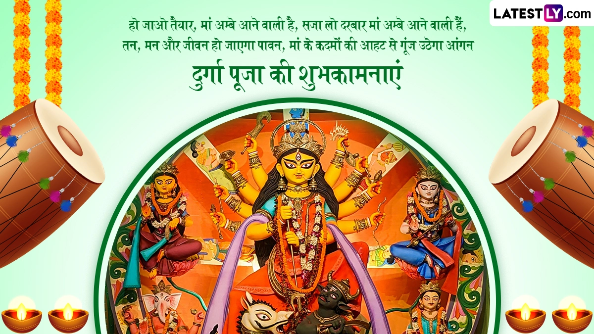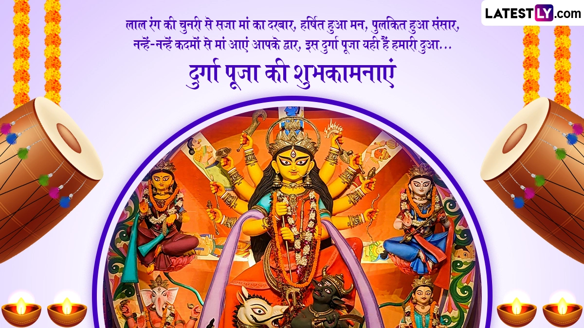 Durga Puja 2025 Wishes in Hindi: एक तरफ जहां हर कोई मां दुर्गा (Maa Durga) के नौ स्वरूपों की उपासना और भक्ति में लीन है तो वहीं दूसरी तरफ शारदीय नवरात्रि (Sharad Navratri) के छठे दिन पांच दिवसीय दुर्गा पूजा उत्सव की शुरुआत हो जाती है. नवरात्रि का छठा दिन नवदुर्गा के छठे स्वरूप मां कात्यायनी (Maa Katyayani) को समर्पित होता है, इसलिए भक्त उनकी उपासना करते हैं, लेकिन शारदीय नवरात्रि की षष्ठी तिथि बंगाली समुदाय के लोगों के लिए बेहद खास मानी जाती है. इस तिथि को महा षष्ठी (Maha Sasthi) भी कहा जाता है, क्योंकि इसी तिथि से पांच दिवसीय दुर्गा पूजा (Durga Puja) का भव्य आगाज होता है. इस साल 28 सितंबर 2025 को महा षष्ठी तिथि है और इसी दिन दुर्गा पूजा की शुरुआत हो रही है, जिसका समापन 2 अक्टूबर 2025 को विजयादशमी के साथ होगा. दुर्गा पूजा का पर्व बंगाली समुदाय के लोग बहुत जोश और उत्साह के साथ मनाते हैं. षष्ठी तिथि से लेकर दशमी तिथि तक मां दुर्गा की उपासना की जाती है और विजयादशमी के दिन मां दुर्गा की प्रतिमाओं का विसर्जन किया जाता है.