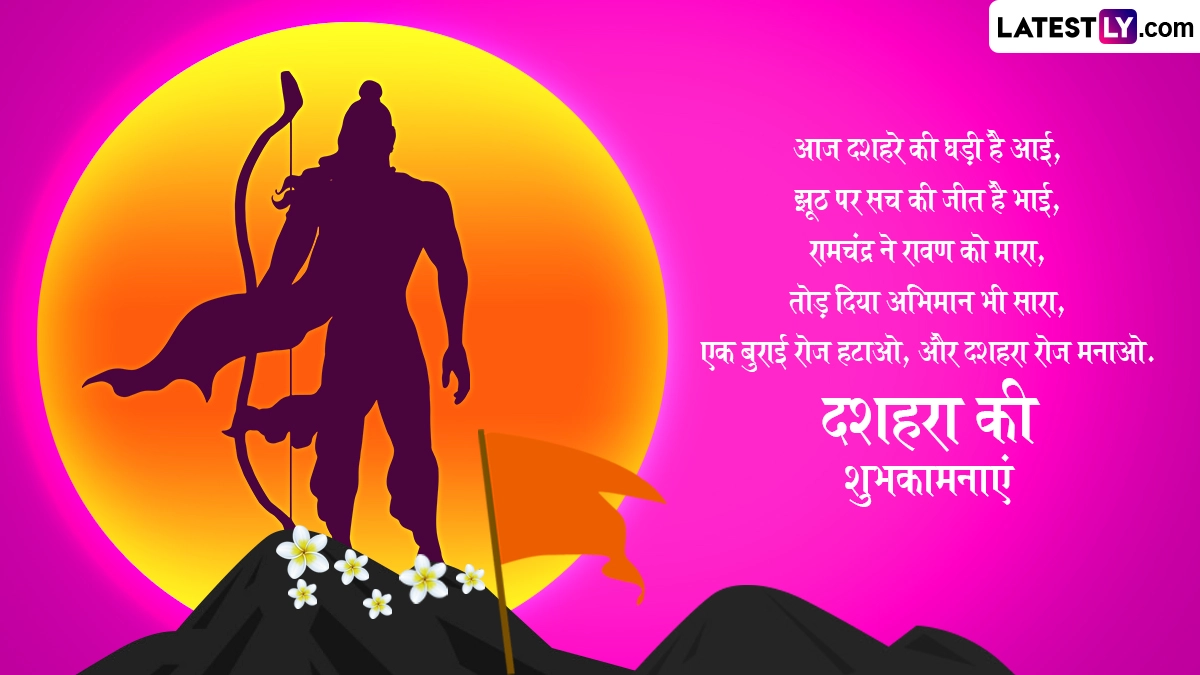 दशहरे का त्योहार अधर्म पर धर्म, असत्य पर सत्य और बुराई पर अच्छाई की जीत का प्रतीक है. इस पर्व को देशभर में लोग अपनी-अपनी स्थानीय परंपराओं और रीति-रिवाजों के साथ मनाते हैं, साथ ही शुभकामना संदेश भेजे जाते हैं. ऐसे में आप भी दशहरा के इन शानदार हिंदी मैसेजेस, वॉट्सऐप विशेज, फेसबुक ग्रीटिंग्स, कोट्स को भेजकर अपनों को शुभकामनाएं दे सकते हैं.