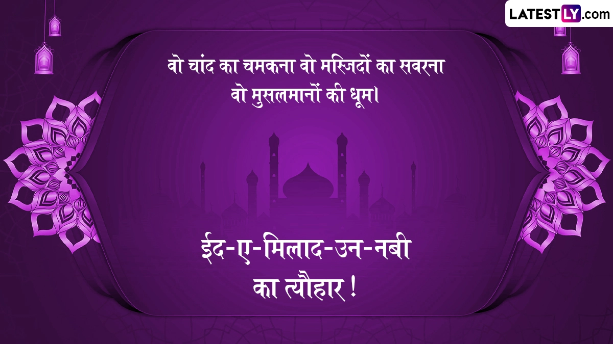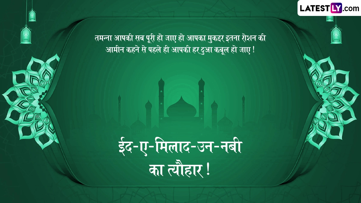 मुस्लिम समुदाय के लोगों द्वारा मनाए जाने वाले त्योहारों में ईद-ए-मिलाद-उन-नबी के त्योहार का विशेष महत्व बताया जाता है. पैगंबर मोहम्मद के जन्मोत्सव के तौर पर मनाए जाने वाले ईद-ए-मिलाद पर उनकी शिक्षाओं और जीवन को याद किया जाता है, साथ ही मुबारकबाद भी दी जाती है. ऐसे में आप भी इन हिंदी मैसेजेस, शायरी, वॉट्सऐप विशेज, फेसबुक ग्रीटिंग्स, फोटो एसएमएस को भेजकर प्रियजनों से ईद-मिलाद-उन-नबी मुबारक कह सकते हैं.