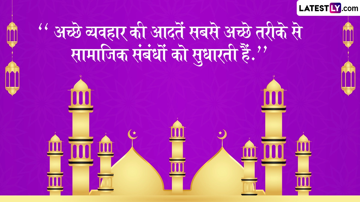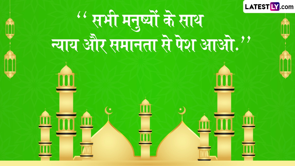 दुनिया भर के मुसलमान इस त्यौहार को बहुत खुशी के साथ मनाते हैं. 2024 में ईद-ए-मिलाद (मौलिद अल-नबी) की तारीख 16 सितंबर को पड़ेगी. त्योहार के दिन मुसलमान नए कपड़े पहनते हैं और विशेष प्रार्थना करने के लिए निकटतम मस्जिदों में जाते हैं. पैगंबर मुहम्मद का जन्म अरब के एक शहर मक्का में हुआ था. माना जाता है कि उनकी शिक्षाएँ समुदाय के लिए बहुत मूल्यवान थीं. मुसलमान पैगंबर मुहम्मद की महान शिक्षाओं को याद करने और उन पर चर्चा करने के लिए बैठकें आयोजित करते हैं. ईद-मिलाद-उन-नबी के लिए हम ले आये हैं कुछ कोट्स जिन्हें आप भेजकर ईद की मुबारकबाद दे सकते हैं.