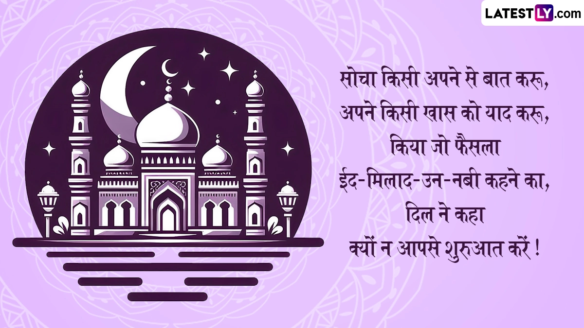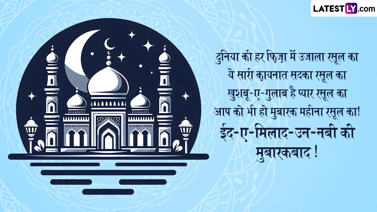 Eid Milad-Un-Nabi 2024 Wishes in Hindi: मुस्लिम समुदाय के लोगों द्वारा मनाए जाने वाले त्योहारों में ईद-ए-मिलाद-उन-नबी (Eid Milad-Un-Nabi) के त्योहार का विशेष महत्व बताया जाता है. इस्लामिक चंद्र कैलेंडर के अनुसार, रबी-उल-अव्वल (Rabi-ul-Awal) के महीने में इस पर्व को मनाया जाता है, जो इस्लामिक कैलेंडर का तीसरा महीना है. इस महीने को सबसे महत्वपूर्ण महीना माना जाता है, क्योंकि इसी महीने में पैगंबर मोहम्मद का जन्म हुआ था, इसलिए ईद-ए-मिलाद के पर्व को उनके जन्मोत्सव के तौर पर मनाया जाता है. इस दिन लोग उनकी शिक्षाओं और जीवन को याद करते हैं. ईद-ए-मिलाद-उन-नबी को रबी-उल-अव्वल के 12वें दिन मनाया जाता है. इस साल भारत में रबी-उल-अव्वल का चांद 4 सितंबर 2024 को नजर आया था, जिसके हिसाब से 16 सितंबर को ईद-ए-मिलाद-उन-नबी का त्योहार मनाया जा रहा है.
