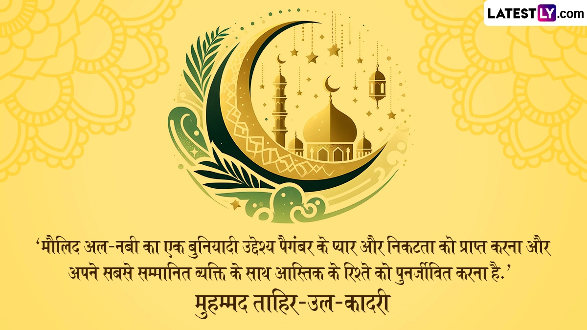 Eid Milad-Un-Nabi Quotes 2024: मिलाद-उन-नबी (Milad un Nabi), जिसे ईद-ए-मिलाद (Eid-e-Milad) और मौलिद-उन-नबी के नाम से भी जाना जाता है. इस्लाम धर्म के अनुयायियों के लिए यह बहुत महत्वपूर्ण त्योहार है, जो अल्लाह के आखिरी दूत पैगंबर मुहम्मद की सालगिरह की याद दिलाता है. अधिकांश सूफी इस अवसर को इस्लामी कैलेंडर के तीसरे माह रबी अल-अव्वल में मनाते हैं. ईद-ए-मिलाद, रबी-अल-अव्वल (Rabi-al-Awal) के 12वें दिन सुन्नी मुसलमानों द्वारा मनाया जाता है, जब कि शिया मुसलमान इस पर्व को रबी-अल-अव्वल के 17वें दिन मनाते हैं. यह चंद्रमा के दिखने पर निर्धारित होता है. इस वर्ष, ईद-ए-मिलाद 17 सितंबर 2024, दिन मंगलवार को मनाया जाएगा. यह भी पढ़ें: Rabi ul Awal 2024 Mubarak Messages: रबी-उल-अव्वल मुबारक! प्रियजनों संग शेयर करें ये हिंदी Quotes, WhatsApp Wishes और Facebook Greetings