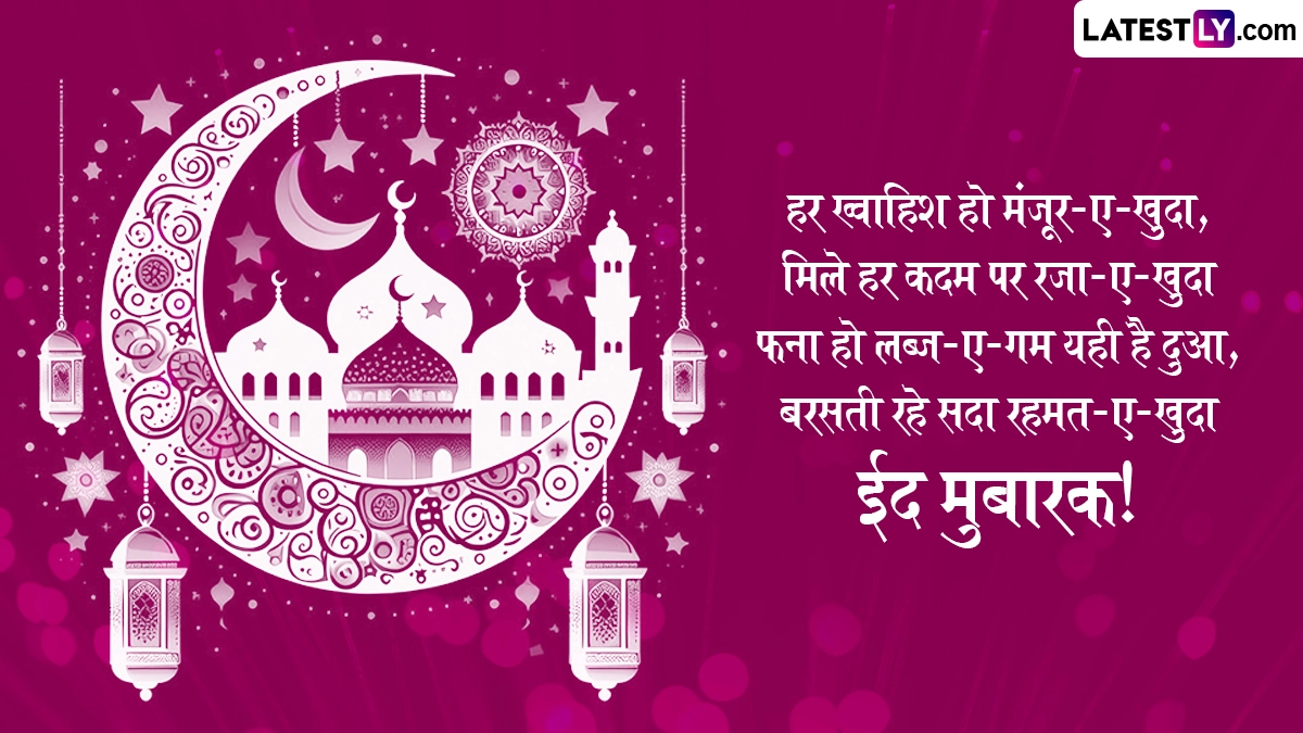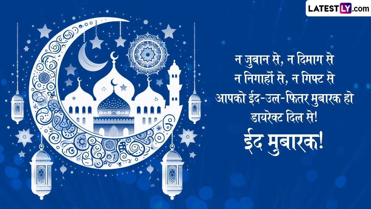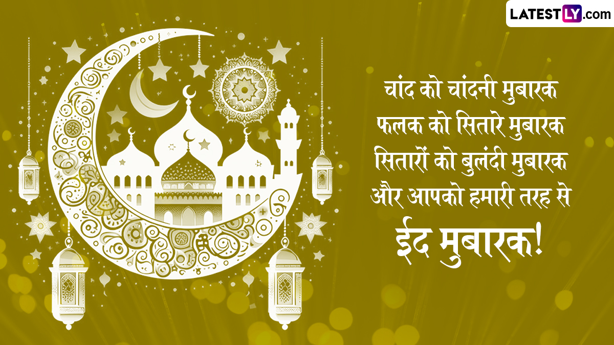 Eid Mubarak 2025 Hindi Wishes: इस्लामिक चंद्र कैलेंडर के नौंवे महीने रमजान (Ramadan) के समापन के बाद शव्वाल (Shawwal) महीने की पहली तारीख को रमजान ईद का त्योहार दुनिया भर में धूमधाम से मनाया जाता है, जिसका हर किसी को बेसब्री से इंतजार रहता है. रमजान के महीने में 29 या 30 रोजे रखने के बाद जब आसमान में शव्वाल के चांद का दीदार होता है तब उसके अगले दिन ईद का त्योहार मनाया जाता है. रमजान ईद (Ramzan Eid) को मीठी ईद (Meethi Eid), ईद-उल-फितर (Eid-ul-Fitr) और ईद-अल-फितर (Eid-al-Fitr) जैसे नाम से जाना जाता है. इस साल रमजान महीने की शुरुआत 2 मार्च 2025 से हुई थी और आज यानी 31 अप्रैल 2025 को ईद का त्योहार मनाया जा रहा है. दुनिया भर के मुसलमान ईद के जश्न को हर्षोल्लास के साथ मना रहे हैं.
