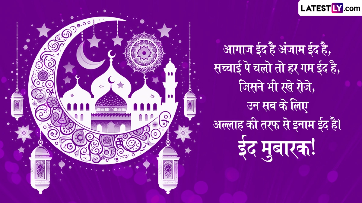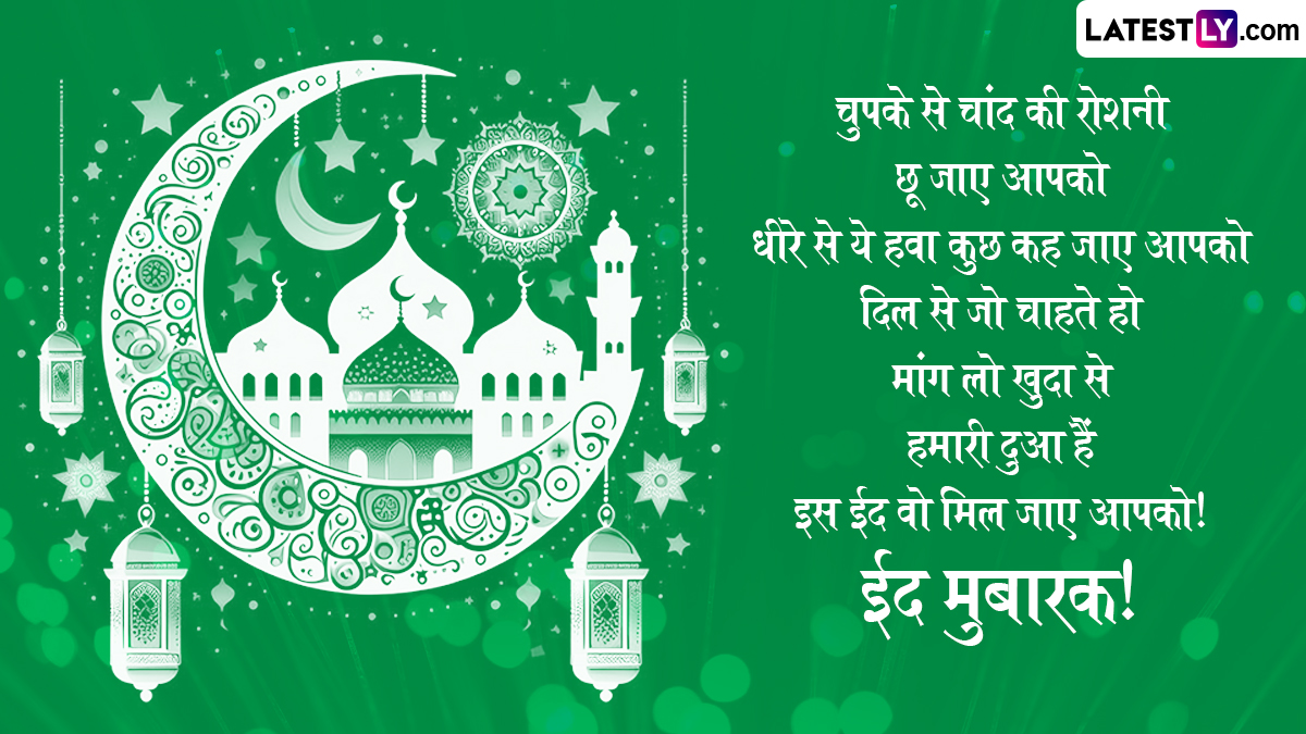 ईद का त्योहार इस्लामिक हिजरी कैलेंडर के दसवें महीने यानी शव्वाल की पहली तारीख को मनाया जाता है. इस दिन सुबह लोग ईदगाह और मस्जिदों में नमाज अदा करके एक-दूसरे को ईद मुबारक कहते हैं. ऐसे में इस बेहद खास अवसर पर आप भी मीठी ईद के इन प्यार भरे हिंदी विशेज, वॉट्सऐप स्टिकर्स, शायरी, जीआईएफ ग्रीटिंग्स और फोटो मैसेजेस को भेजकर अपनों को मुबारकबाद दे सकते हैं.