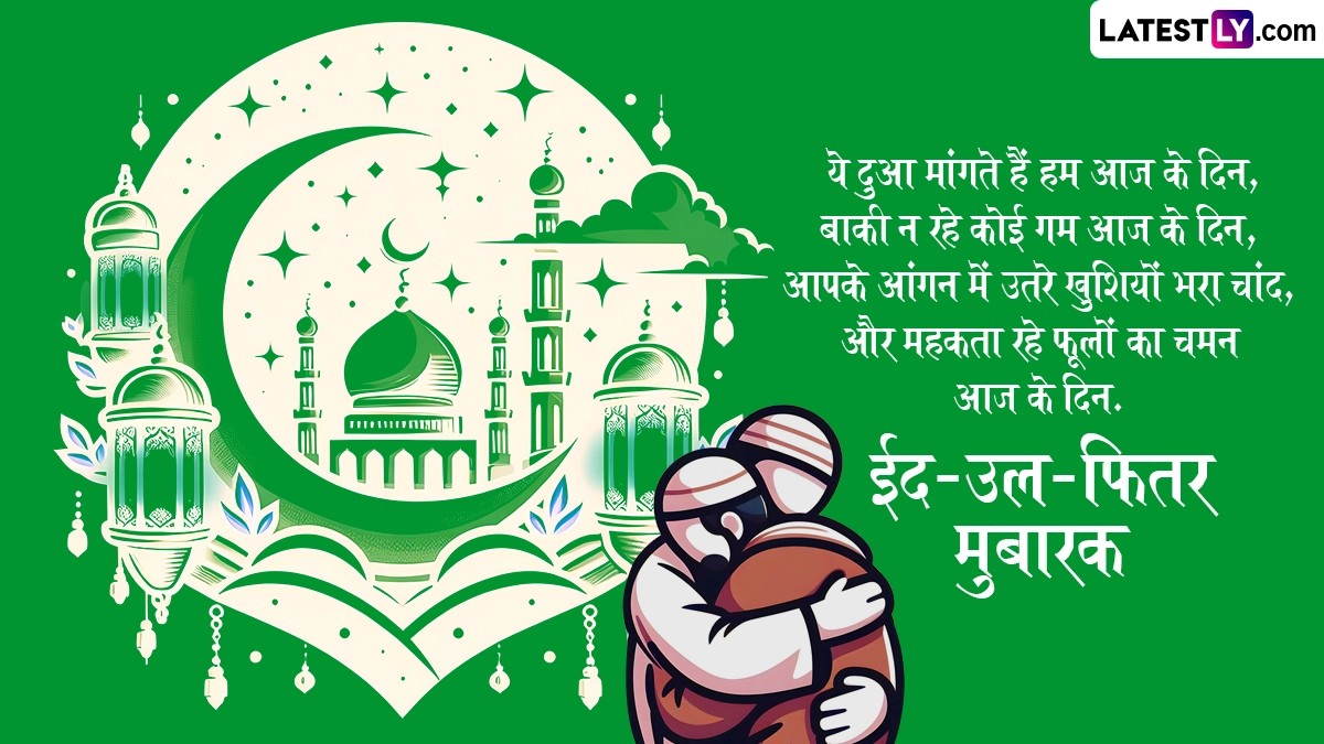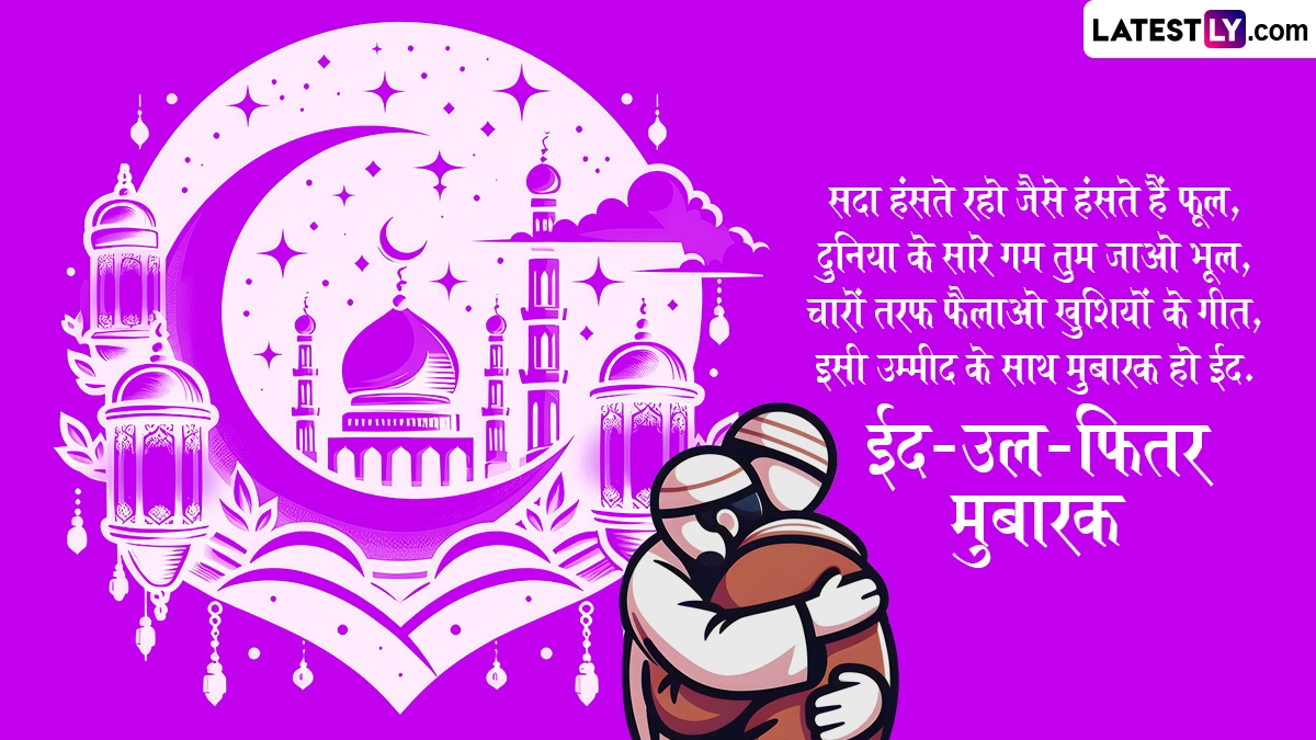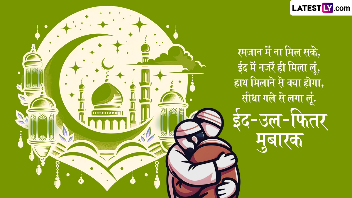ईद-उल-फितर के दिन सुबह के समय मस्जिदों और ईदगाहों में नमाज अदा करने के बाद लोग एक-दूसरे के गले मिलकर 'ईद मुबारक' कहते हैं. इस दिन घरों में 'शीरखुरमा' और 'सेवइयां' जैसे लजीज व्यंजन बनाए जाते हैं और दोस्तों-करीबियों को दावत पर बुलाया जाता है. इस खास अवसर पर आप इन शानदार हिंदी विशेज, कोट्स, वॉट्सऐप मैसेजेस, फेसबुक ग्रीटिंग्स के जरिए अपनों को ईद-उल-फितर की मुबारकबाद दे सकते हैं.