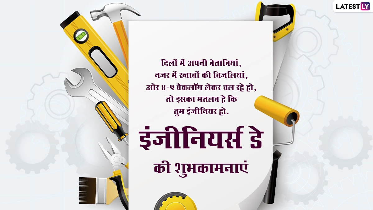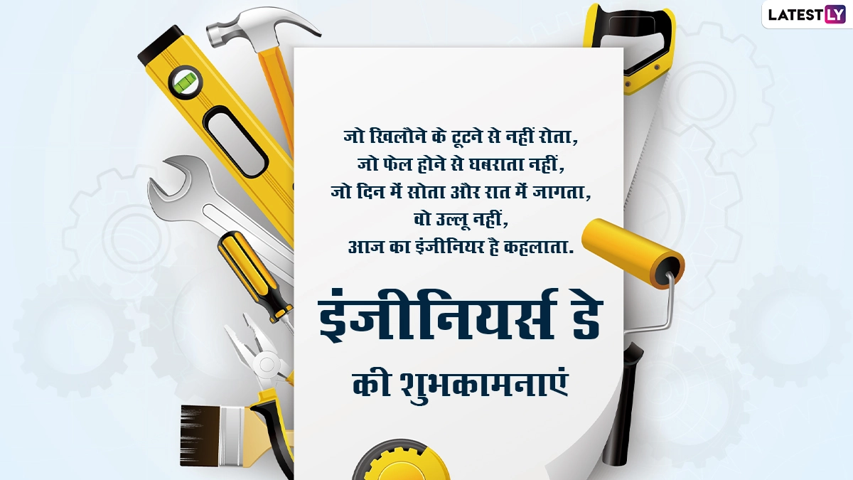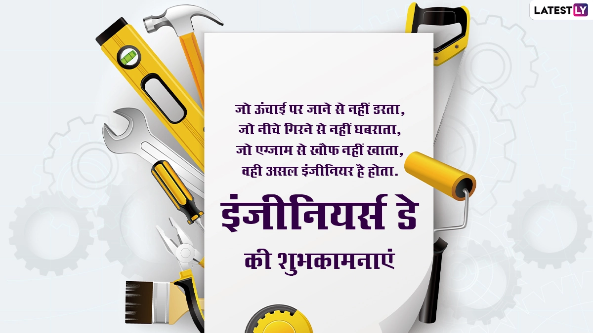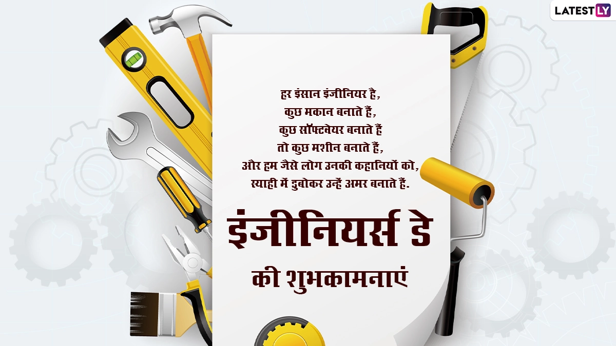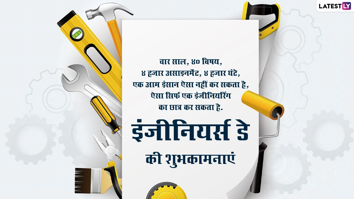 इंजीनियर्स डे यानी सर एम विश्वेश्वरैया जयंती पर इंजीनियरों के सम्मान में देशभर में कई कार्यक्रमों का आयोजन किया जाता है. इस दिन उनके कठोर परिश्रम, योगदान और कार्यों के लिए उनकी सराहना की जाती है, साथ ही शुभकामना संदेशों का आदान-प्रदान किया जाता है. ऐसे में इस अवसर पर आप भी इन विशेज, कोट्स, वॉट्सऐप मैसेजेस, जीआईएफ ग्रीटिंग्स और फोटो एसएमएस को भेजकर इंजीनियर्स डे की शुभकामनाएं दे सकते हैं. यह भी पढ़ें: Engineering Day 2024: इंजीनियर्स डे और सर विश्वेश्वरैया की जयंती आज, यहां देखें इंजीनियरिंग दिवस के Hindi Quotes