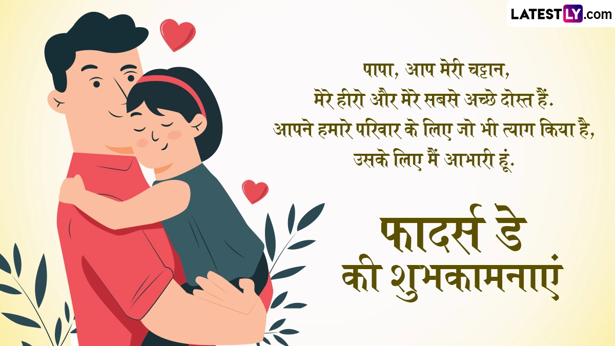 Father’s Day 2025 Wishes in Hindi: यूं तो माता-पिता (Mother-Father) के प्यार, समर्पण, त्याग और उनके प्रति सम्मान जताने के लिए हर दिन खास होता है, बावजूद इसके साल के कुछ दिन बेहद स्पेशल होते हैं, जब बच्चे अपने माता-पिता के प्रति आदर और सम्मान व्यक्त करने के लिए खास तैयारियां करते हैं. जिस तरह से मां के प्रति प्यार और सम्मान जाहिर करने के लिए मदर्स डे मनाया जाता है, ठीक उसी तरह से पिता के प्रति प्यार और सम्मान जाहिर करने के लिए हर साल जून महीने के तीसरे रविवार को फादर्स डे मनाया जाता है. इस साल 15 जून 2025 को फादर्स डे (Father’s Day) मनाया जा रहा है. इसमें कोई दो राय नहीं है कि पिता हमारी जिंदगी में किसी सुपर हीरो से कम नहीं होते हैं. वो हर मुसीबत में सबसे पहले और आगे हमारी ढाल बनकर खड़े रहते हैं. मां की तरह ही उनके प्यार और त्याग की कोई सीमा नहीं होती है.