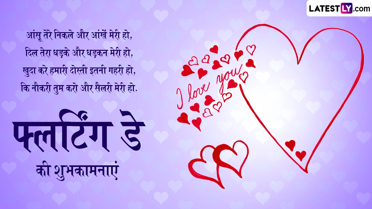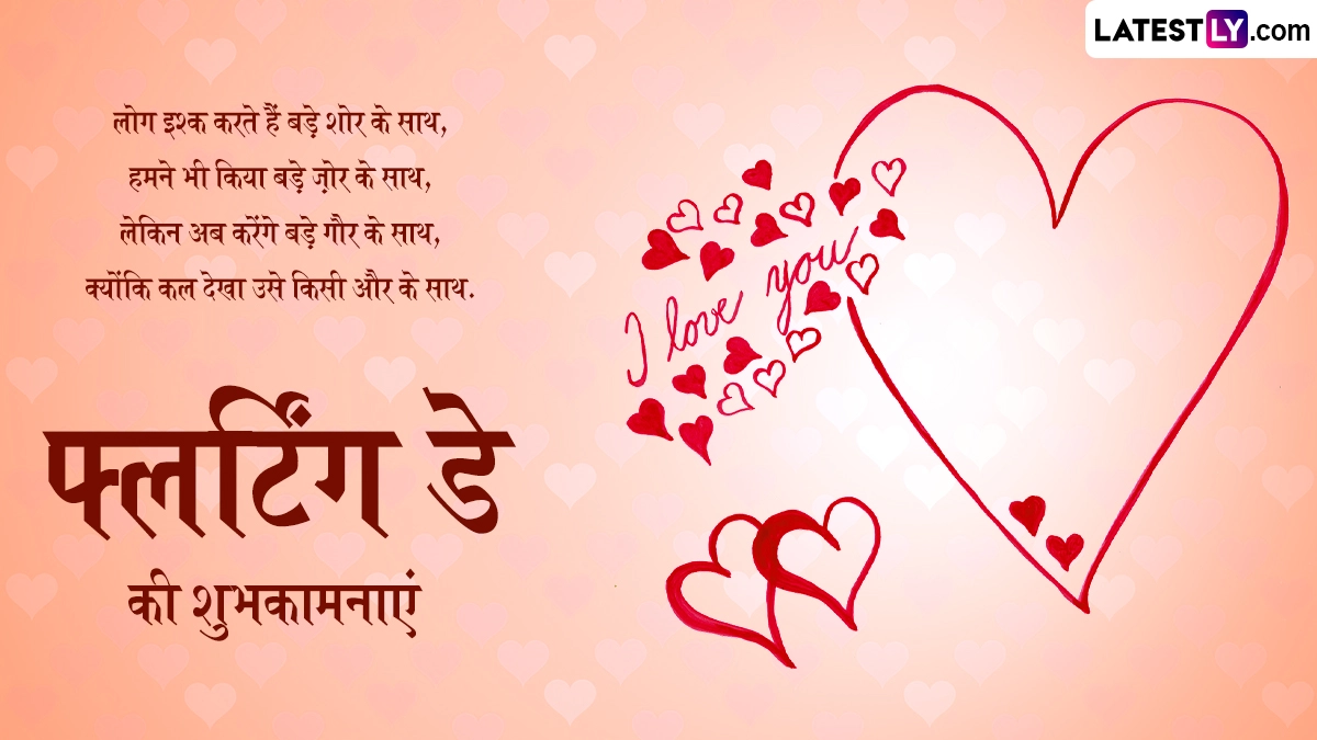 Flirting Day 2024 Wishes in Hindi: वैलेंटाइन वीक (Valentine's Week) का इंतजार दुनिया भर के कपल्स को बेसब्री से रहता है और वैलेंटाइन वीक सेलिब्रेशन के बाद एंटी-वैलेंटाइन वीक (Anti-Valentine's Week) की शुरुआत होती है, जिसे प्यार में बेवफाई और धोखे का शिकार हुए लोग सेलिब्रेट करते हैं. एंटी-वैलेंटाइन वीक के चौथे दिन यानी 18 फरवरी को फ्लर्टिंग डे (Flirting Day) मनाया जाता है, जिसे प्यार करने वाले कपल्स अपने पार्टनर और दोस्तों के साथ खास अंदाज में सेलिब्रेट करते हैं. इसके अलावा सिंगल और प्यार में धोखा खाए लोग भी फ्लर्टिंग डे को अपने-अपने तरीके से मनाते हैं. इस दिन को उन लोगों के लिए भी बेहद खास माना जाता है, जो अपने क्रश या अपने पसंदीदा शख्स से अपने दिल की बात कहकर नए रिश्ते की शुरुआत करने की ख्वाहिश रखते हैं.