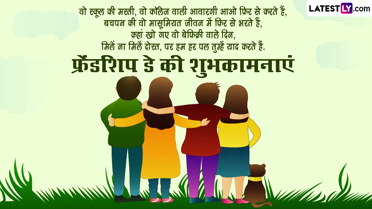 फ्रेंडशिप डे को हर कोई अपने दोस्तों के साथ सेलिब्रेट करके अपने रिश्ते को मजबूत बनाने की कोशिश करता है, इसलिए इसे दुनिया भर में पूरे जोश और उत्साह के साथ मनाया जाता है. इस दिन लोग अपने दोस्तों के साथ पार्टी करते हैं, घूमने-फिरने की योजना बनाकर इसे यादगार बनाते हैं. इसके साथ ही शुभकामना संदेशों का आदान-प्रदान भी किया जाता है. ऐसे में इस खास अवसर पर आप इन शानदार हिंदी विशेज, वॉट्सऐप मैसेजेस, कोट्स, फेसबुक ग्रीटिंग्स को भेजकर फ्रेंडशिप डे की शुभकामनाएं दे सकते हैं.