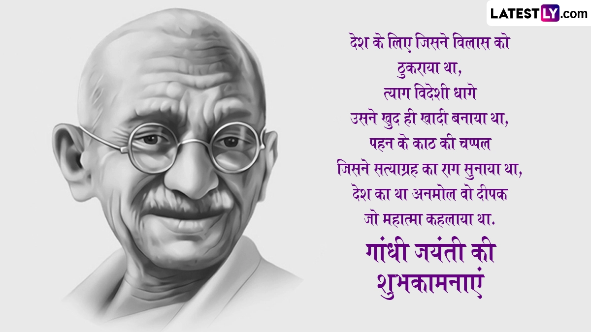 राष्ट्रपिता महात्मा गांधी की जयंती पर देशवासी न सिर्फ उन्हें याद करते हुए श्रद्धांजलि अर्पित करते हैं, बल्कि इस दिन आजादी की लड़ाई में दिए गए उनके महत्वपूर्ण योगदान को भी याद किया जाता है और कई विशेष कार्यक्रमों का भी आयोजन किया जाता है. ऐसे में इस बेहद खास अवसर पर आप इन शानदार हिंदी विशेज, कोट्स, वॉट्सऐप मैसेजेस, फेसबुक ग्रीटिंग्स को भेजकर अपनों को गांधी जयंती की शुभकामनाएं दे सकते हैं.