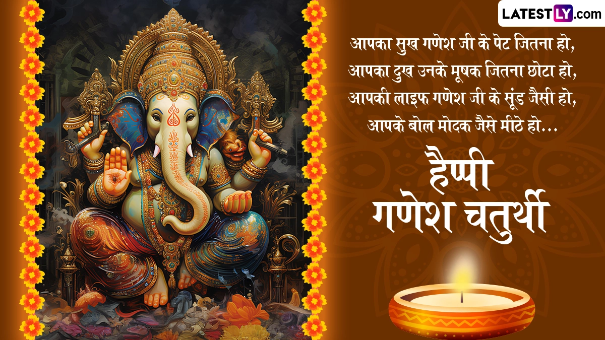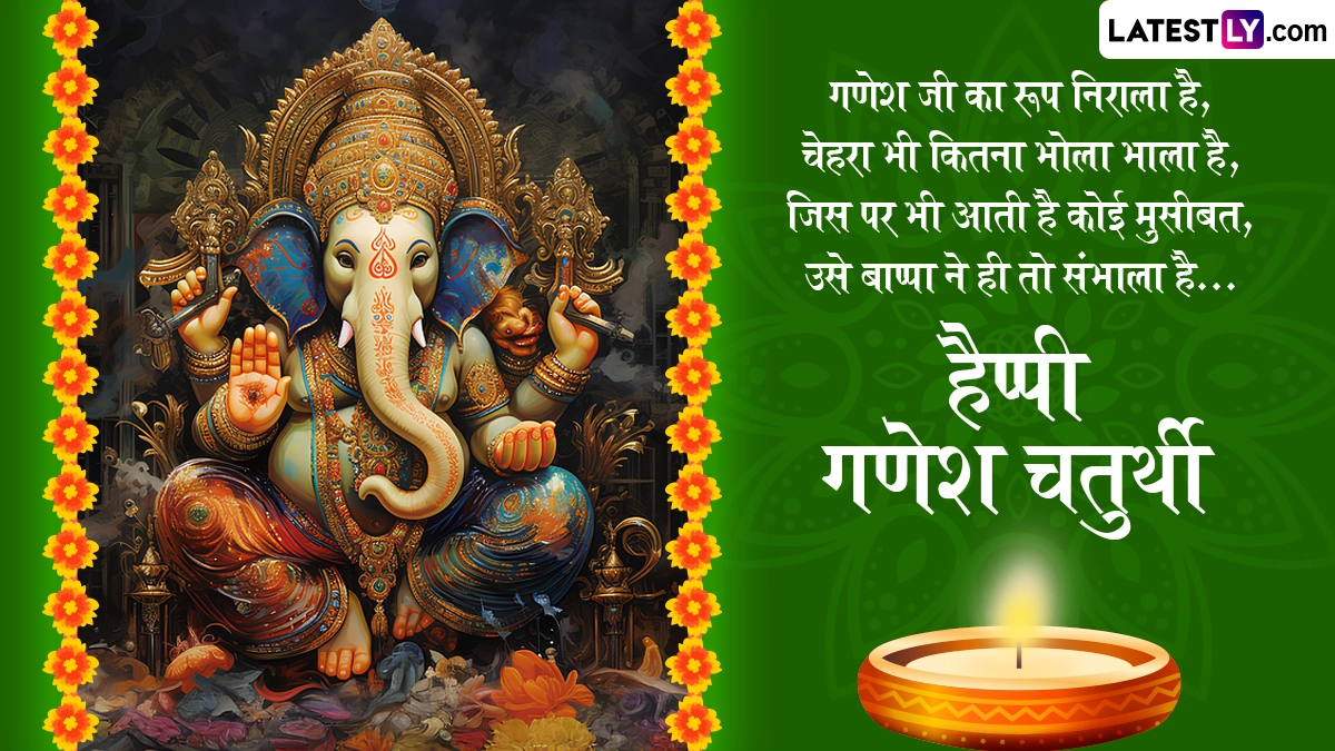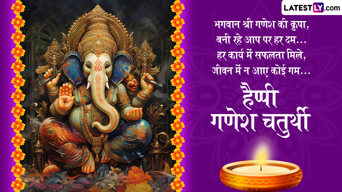 Ganesh Chaturthi 2024 Greetings in Hindi: भगवान शिव (Bhagwan Shiv) और माता पार्वती (Mata Parvati) के लाड़ले पुत्र भगवान गणेश (Bhagwan Ganesh) की पूजा और उपासना को समर्पित गणेशोत्सव के पर्व को लेकर कहा जाता है कि गणपति बप्पा (Ganpati Bappa) गणेश चतुर्थी (Ganesh Chaturthi) के दिन अपने भक्तों के बीच उनके सारे विघ्नों को हरने और उनकी मुरादों की झोली भरने के लिए आते हैं. गणेश चतुर्थी से दस दिवसीय गणेशोत्सव (Ganeshotasav) की शुरुआत हो जाती है, जिसका समापन अनंत चतुर्दशी (Anant Chaturdashi) को होता है. इस भक्तों के मुरादों की झोली भरने के बाद गणपति बप्पा वापस कैलाश लौट जाते हैं. आज (7 सितंबर 2024) गणेश चतुर्थी मनाई जा रही है और इसी के साथ दस दिवसीय गणेशोत्सव की शुरुआत हो चुकी हैं, जिसका समापन 17 सितंबर 2024 को अनंत चतुर्दशी के दिन होगा.