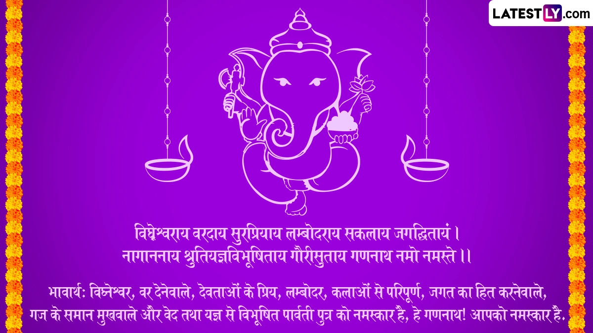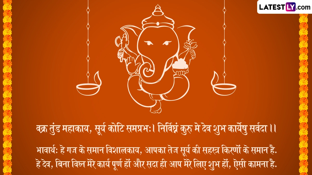 गणेश चतुर्थी पर गणपति बप्पा के भव्य स्वागत के लिए लोग अपने घरों और पंडालों की खास तरीके से सजावट करते हैं. पूरे महाराष्ट्र में गणेशोत्सव की धूम देखने को मिलती है और हर कोई बप्पा की भक्ति में सराबोर नजर आता है, साथ ही शुभकामना संदेश शेयर किए जाते हैं. ऐसे में इस अवसर पर आप आप इन भक्तिमय संस्कृत मैसेजेस, कोट्स, वॉट्सऐप विशेज, जीआईएफ ग्रीटिंग्स, श्लोक को भेजकर गणेशचतुर्थ्याः शुभकामनाः कह सकते हैं.