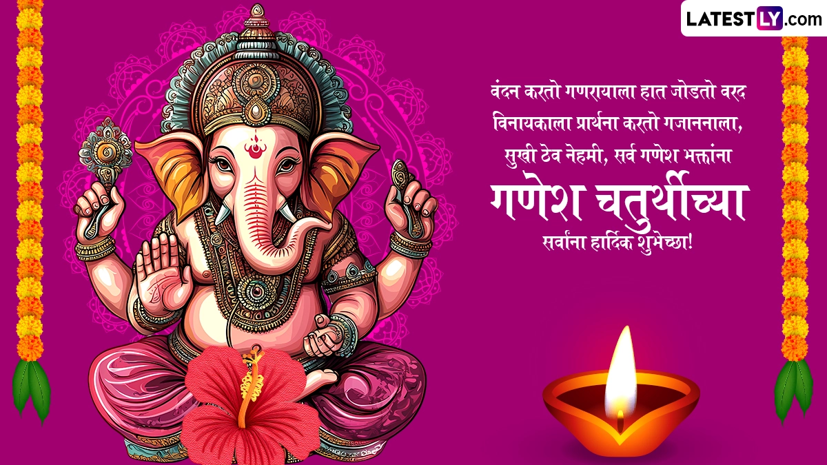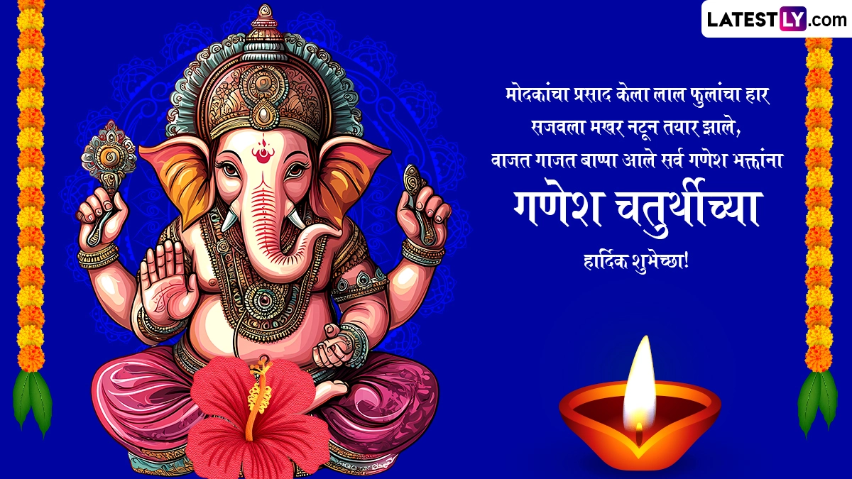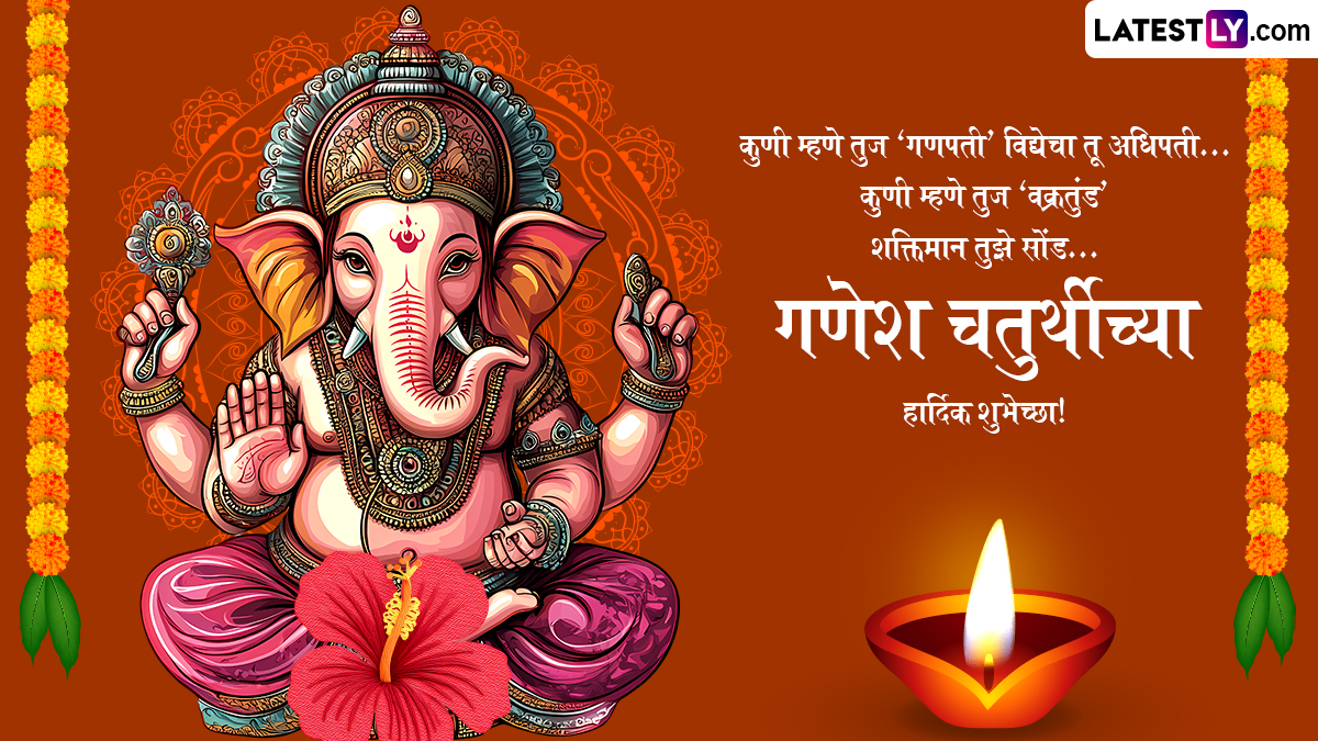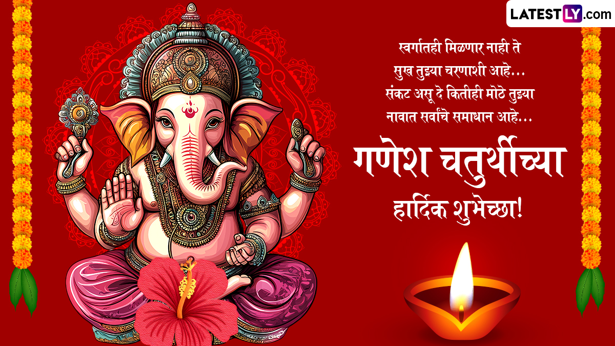 भगवान गणेश को विघ्नहर्ता और बुद्धि-समृद्धि का देवता माना जाता है. इस पर्व में लोग नए कार्यों की शुरुआत करते हैं और गणेशजी की पूजा करते हैं. घरों और सार्वजनिक पंडालों में गणेशजी की मूर्ति स्थापित की जाती है. इसके साथ ही शुभकामना संदेशों का आदान-प्रदान होता है. ऐसे में आप मराठी के इन विशेज, कोट्स, वॉट्सऐप स्टेटस, जीआईएफ ग्रीटिंग्स के जरिए प्रियजनों से गणेश चतुर्थीच्या हार्दिक शुभेच्छा कह सकते हैं.