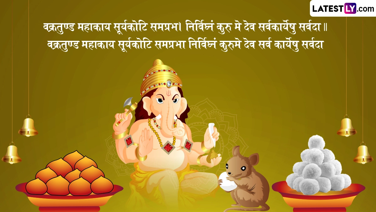 गणेश चतुर्थी के दिन भगवान शिव और माता पार्वती के पुत्र गणेश जी की प्रतिमाओं को धूमधाम से घरों और पंडालों में स्थापित किया जाता है. हर तरफ गणपति बप्पा मोरया, मंगलमूर्ति मोरया के जयकारे गूंजने लगते हैं और शुभकामना संदेशों का आदान प्रदान किया जाता है. इस अवसर पर इन शानदार संस्कृत श्लोक, कोट्स, वॉट्सऐप विशेज, फेसबुक मैसेजेस, ग्रीटिंग्स के जरिए गणेशचतुर्थ्याः शुभकामनाः! कहकर शुभकामनाएं दे सकते हैं.