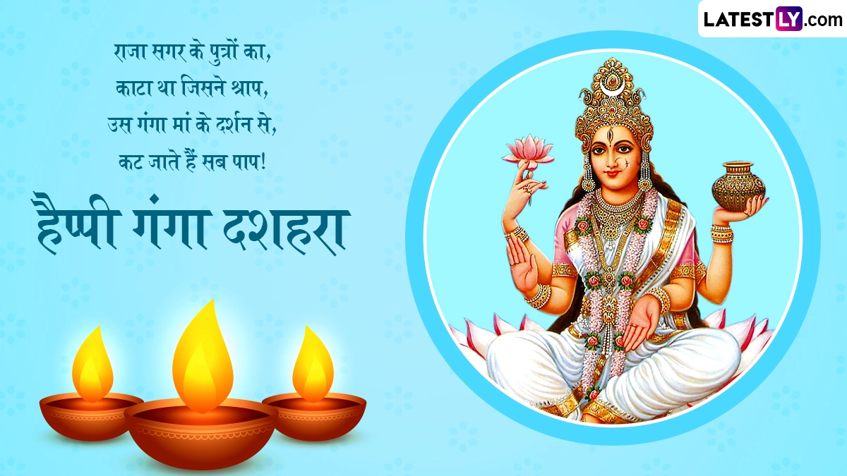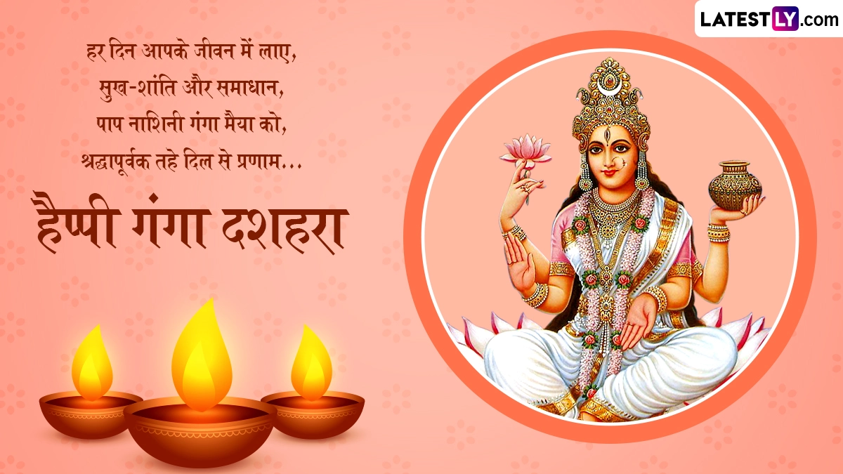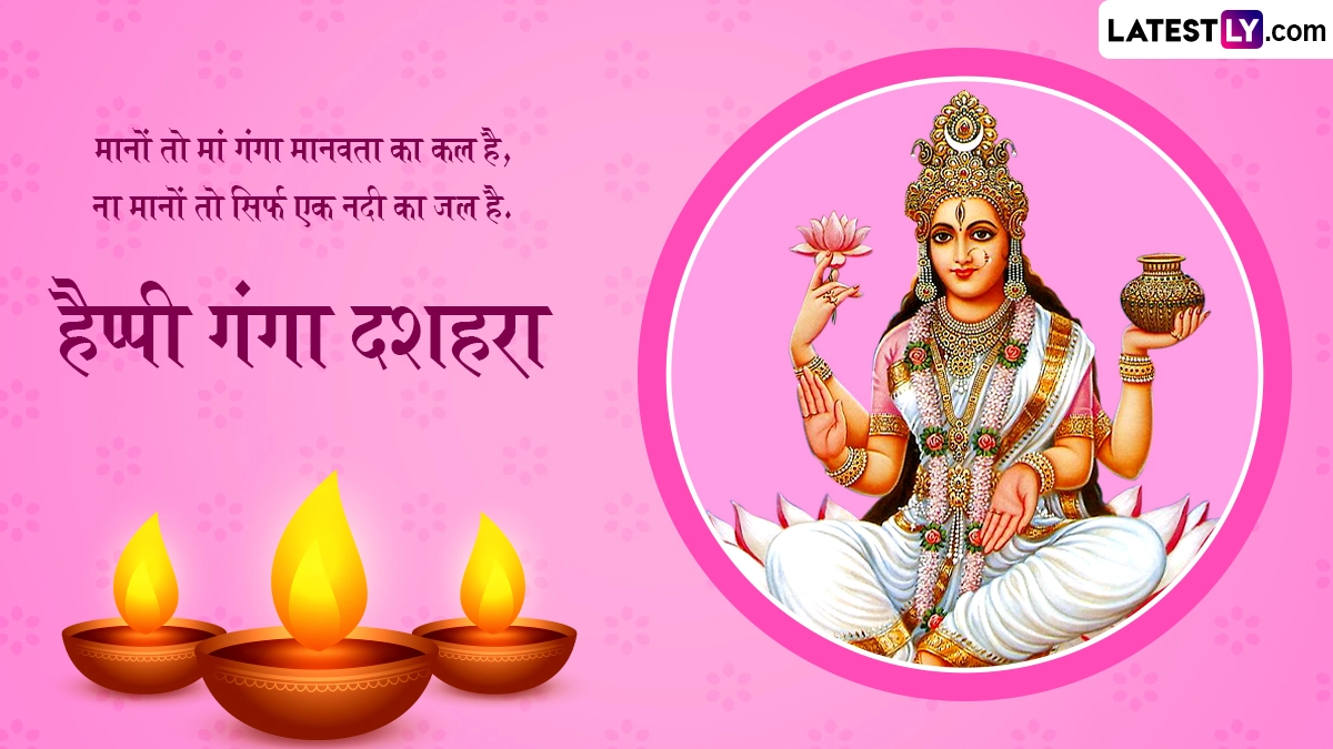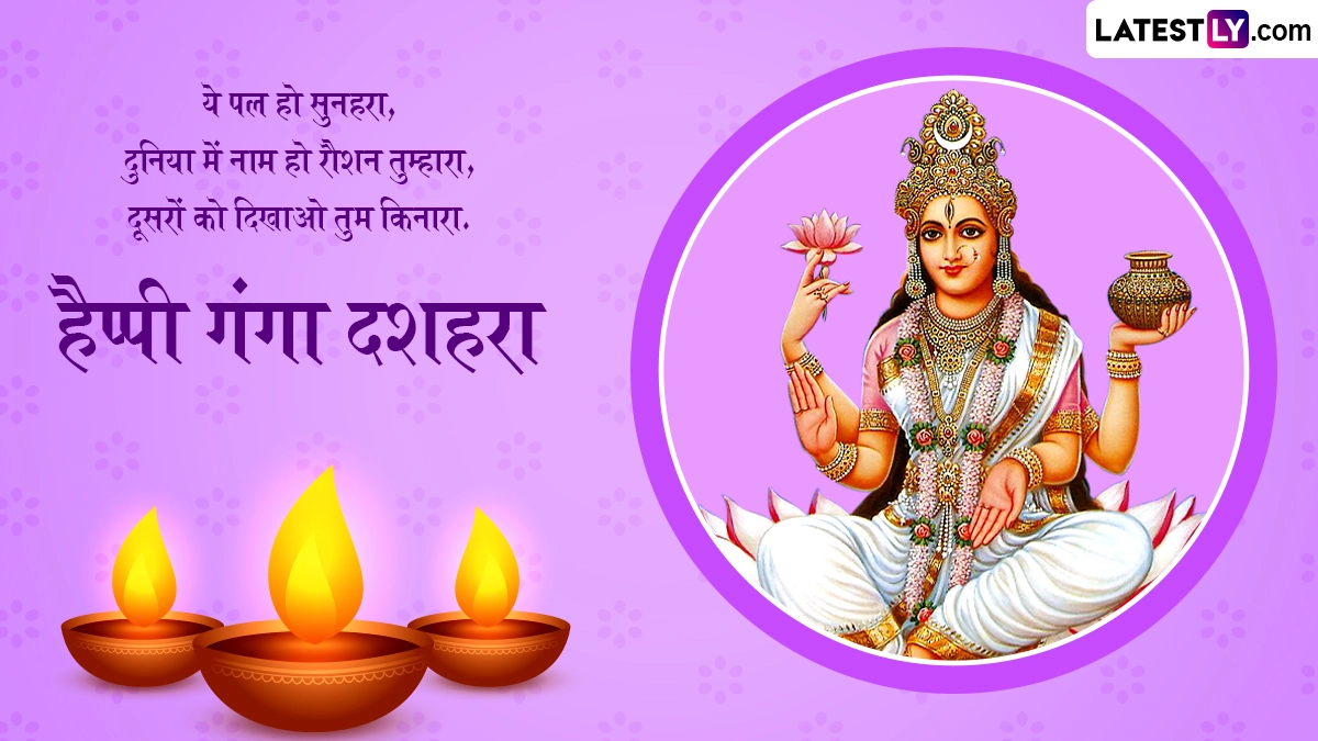 गंगा दशहरा के पावन अवसर पर देश के कोने-कोने से भक्त गंगा नदी में आस्था की डुबकी लगाने के लिए पहुंचते हैं. इसके साथ ही इस दिन गंगा स्नान के बाद जरूरतमंदों को दान देने से पुण्य फलों की प्राप्ति होती है. इतना ही नहीं इस पर्व की लोग एक-दूसरे को बधाई भी देते हैं. ऐसे में आप भी इन शानदार हिंदी मैसेजेस, कोट्स, वॉट्सऐप विशेज, जीआईएफ ग्रीटिंग्स और फोटो एसएमएस को शेयर कर प्रियजनों को हैप्पी गंगा दशहरा विश कर सकते हैं.