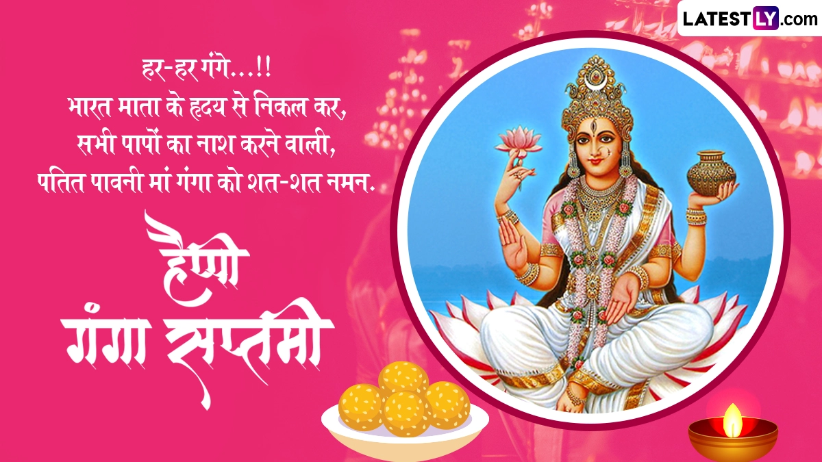 मां गंगा के प्रचंड वेग के चलते भगवान शिव ने उन्हें अपनी जटाओं में धारण किया था, जिसके बाद वे महादेव की जटाओं से निकलकर धरती पर मानव जाति का कल्याण करने के लिए अवतरित हुई थीं. इस पवित्र नदी में स्नान करने से मानव जाति के समस्त पापों का नाश होता है, इसलिए गंगा सप्तमी की बधाई भी दी जाती है. ऐसे में आप इन हिंदी मैसेजेस, वॉट्सऐप विशेज, जीआईएफ ग्रीटिंग्स, कोट्स और फोटो एसएमएस को भेजकर हैप्पी गंगा सप्तमी कह सकते हैं.
