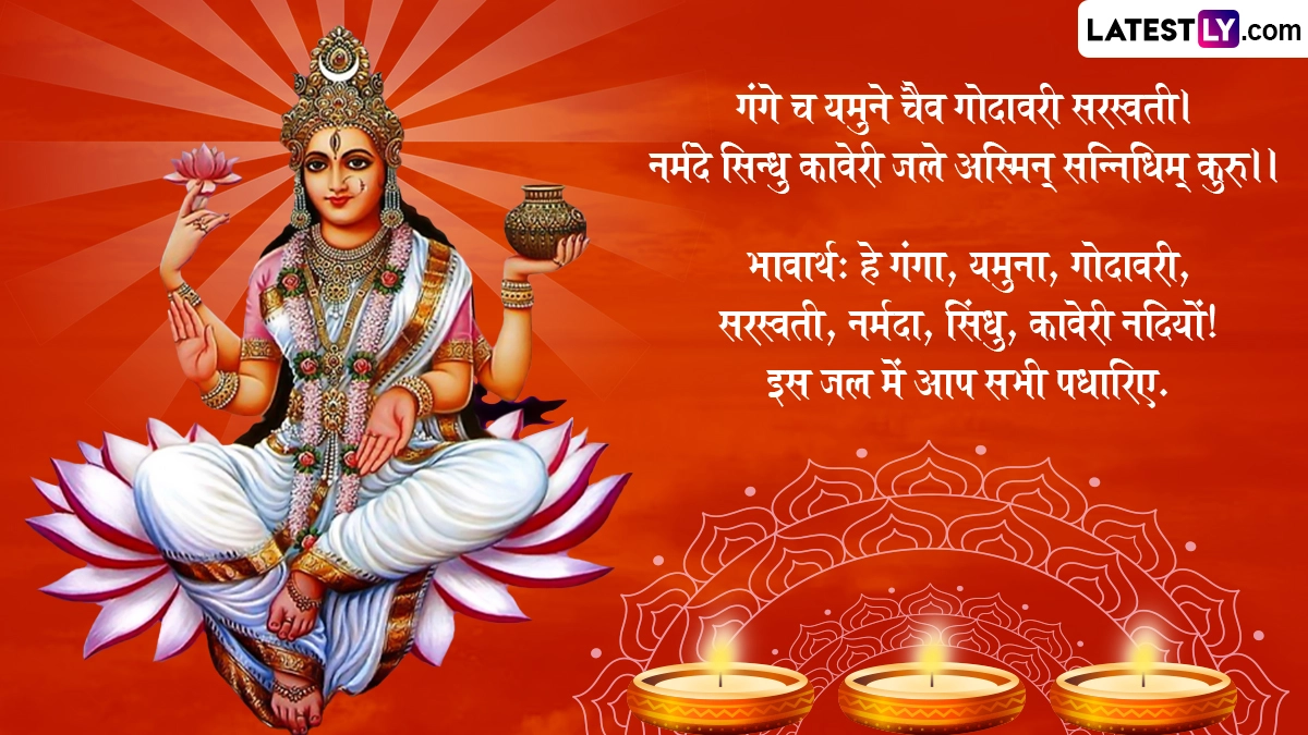 भावार्थ: हे गंगा, यमुना, गोदावरी, सरस्वती, नर्मदा, सिंधु, कावेरी नदियों! इस जल में आप सभी पधारिए.