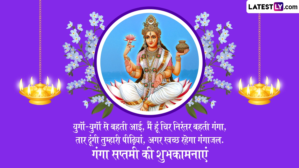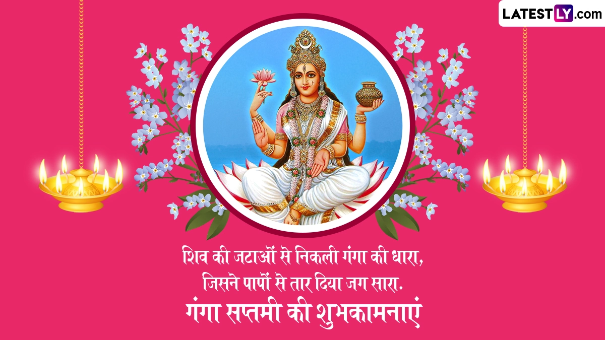 Ganga Saptami 2024 Wishes in Hindi: पतित पावनी मां गंगा (Maa Ganga) को हिंदू धर्म की सबसे पवित्र नदी कहा जाता है, जिसमें आस्था की डुबकी लगाने मात्र से लोगों को समस्त पापों से मुक्ति मिलती है और मोक्ष की प्राप्ति होती है. मां गंगा से संबंधित अनेक कथाएं धर्म ग्रंथों में मिलती हैं. ऐसी मान्यता है कि वैशाख मास के शुक्ल पक्ष की सप्तमी तिथि को मोक्षदायिनी गंगा की उत्पत्ति हुई थी, इसलिए इस शुभ तिथि पर गंगा सप्तमी (Ganga Saptami) का पर्व भक्तिभाव के साथ मनाया जाता है. इस साल गंगा सप्तमी 14 मई 2024, मंगलवार को मनाई जा रही है. प्रचलित मान्यताओं के अनुसार, गंगा सप्तमी मां गंगा के पुनर्जन्म का दिन है, इसलिए इसे गंगा जयंती (Ganga Jayanti) भी कहा जाता है. इस दिन गंगा में आस्था की डुबकी लगाने और गंगा पूजन से पुण्य फलों की प्राप्ति होती है और कुंडली में ग्रहों के अशुभ प्रभाव में कमी आती है.