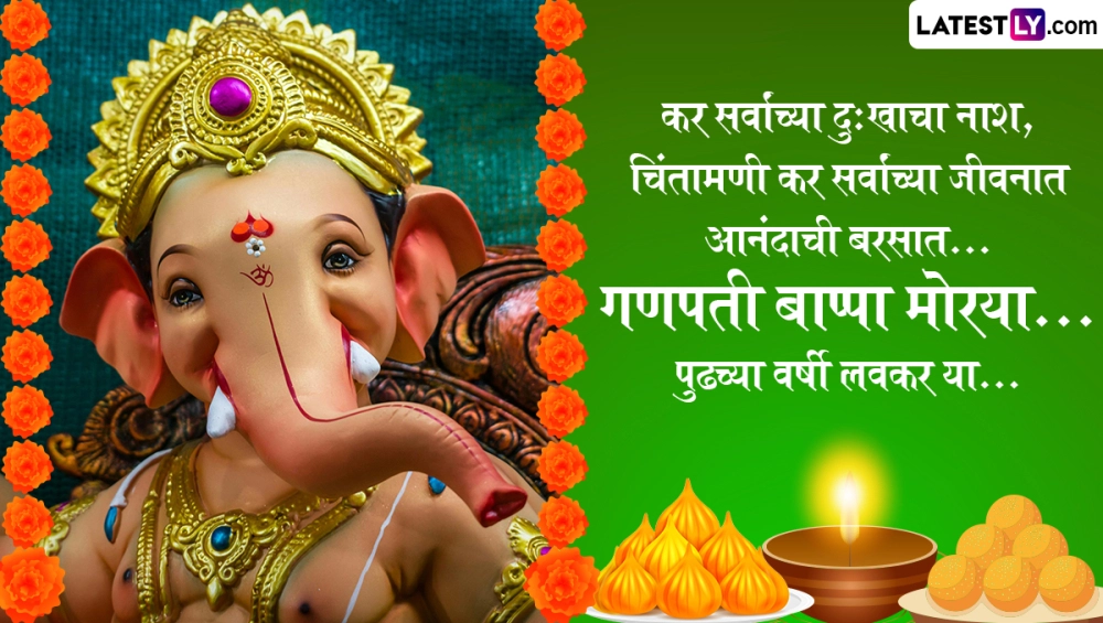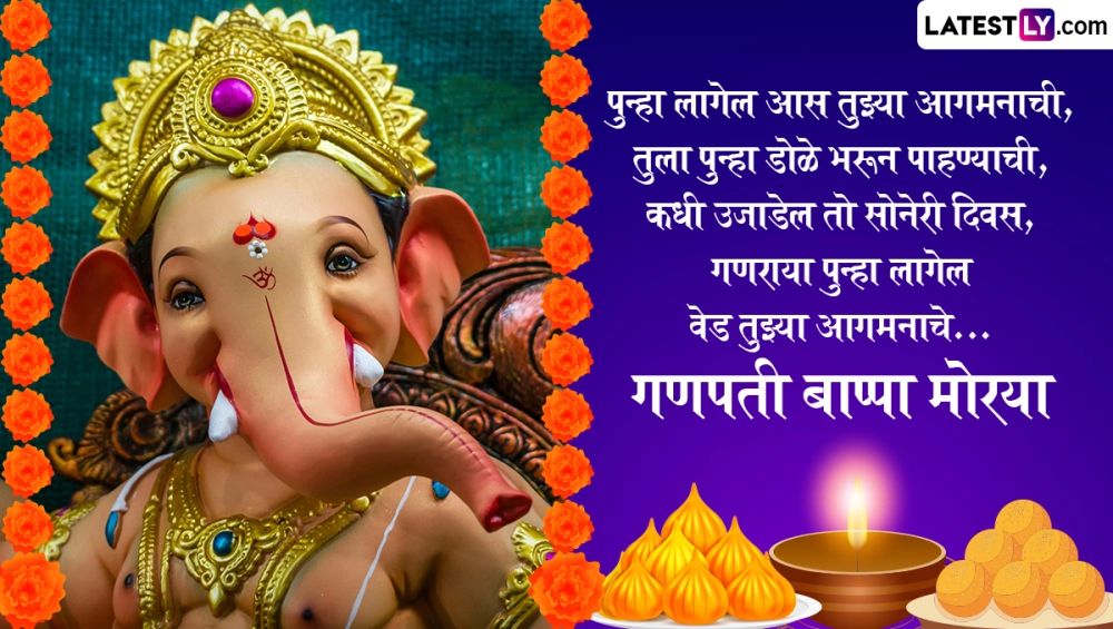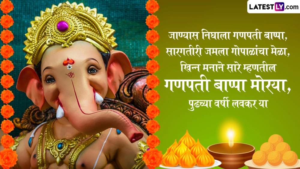 Ganpati Visarjan 2024 Quotes In Marathi: गणेश चतुर्थी (Ganesh Chaturthi 2024) 7 सितंबर से शुरू हो गया है. 17 सितंबर को अनंत चतुर्थी (Anant Chaturthi) पर बप्पा को विदाई दी जाएगी. गणेशोत्सव 10 दिवसीय उत्सव है. यह उत्सव अनंत चतुर्दशी पर समाप्त होगा. गणपति का जन्म भाद्रपद माह के शुक्ल पक्ष की चतुर्थी तिथि को हुआ था. इसलिए इस दिन गणेश जयंती मनाई जाती है. अनंत चतुर्दशी के दिन भक्त बड़ी धूमधाम से बप्पा को विदाई देते हैं और उनसे अगले साल जल्दी आने की कामना करते हैं. बप्पा की मूर्ति को झीलों, नदियों आदि में विसर्जित किया जाता है. कई गणेश भक्त डेढ़ दिन, तीन दिन, पांच दिन, सात दिन या 11 दिन तक गणेश स्थापना करते हैं. यह भी पढ़ें: Ganesh Chaturthi 2024: नन्हा चूहा विशालकाय गणेशजी का वाहन कैसे बना? जानें एक रोचक पौराणिक कथा!