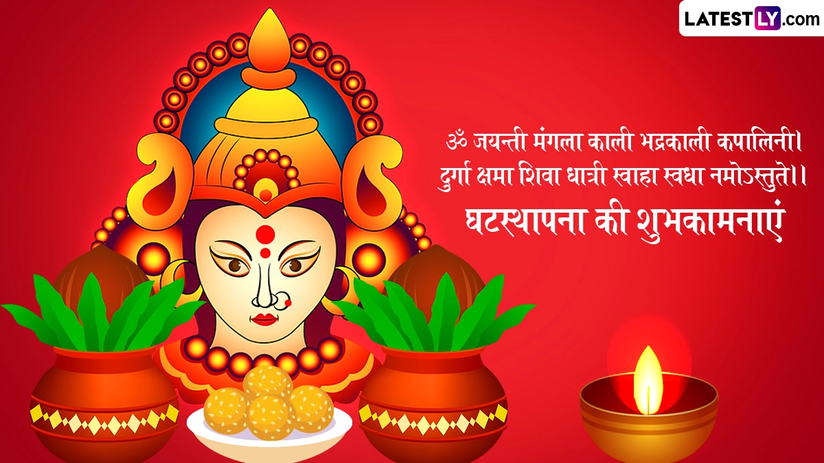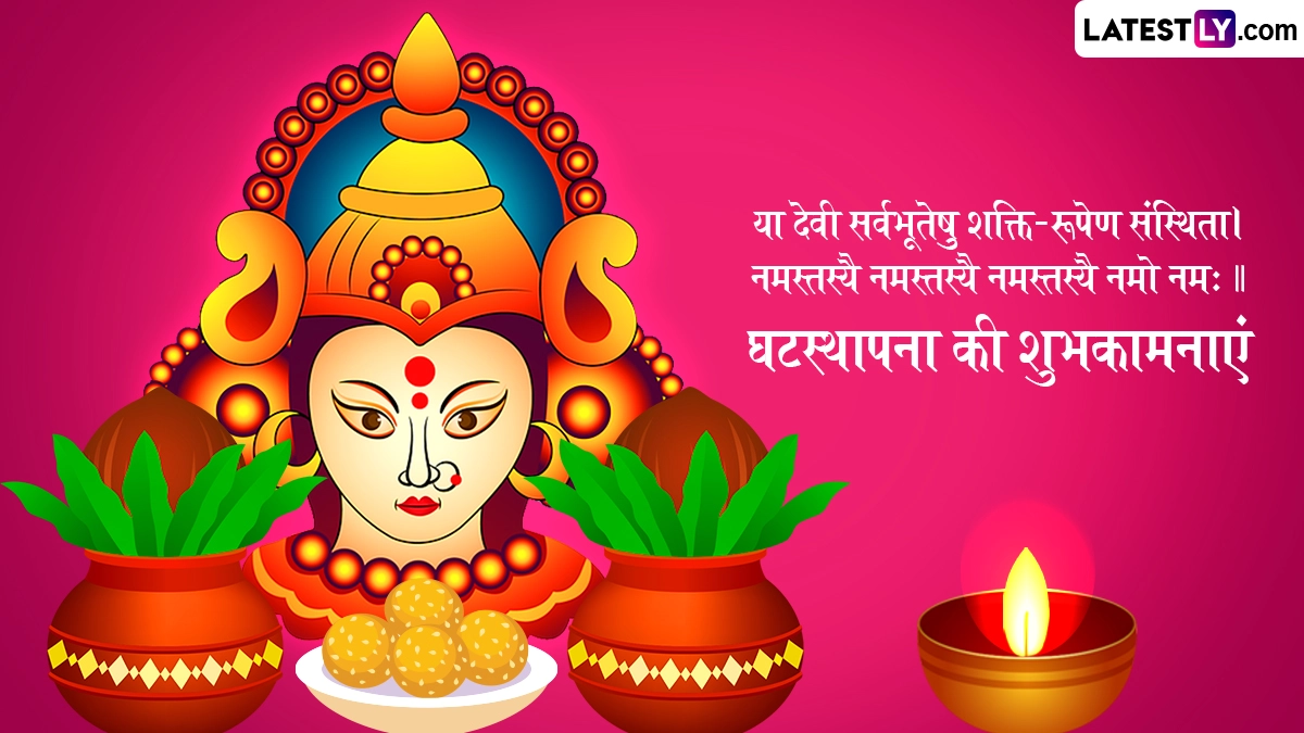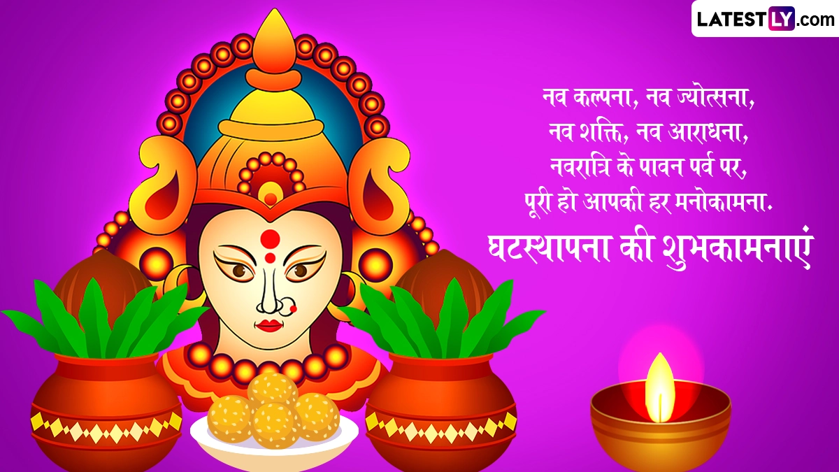 नवरात्रि के पहले दिन नवदुर्गा के प्रथम स्वरूप मां शैलपुत्री की पूजा की जाती है, जबकि आखिरी दिन मां सिद्धिदात्री की उपासना की जाती है. प्रतिपदा तिथि को शुभ मुहूर्त में कलश स्थापना यानी घटस्थापना करके मां दुर्गा का स्वागत किया जाता है और शुभकामना संदेशों का आदान-प्रदान किया जाता है. ऐसे में इस पावन अवसर पर आप इन हिंदी विशेज, वॉट्सऐप मैसेजेस, कोट्स, फेसबुक ग्रीटिंग्स, फोटो एसएमएस के जरिए शारदीय नवरात्रि घटस्थापना की शुभकामनाएं दे सकते हैं.