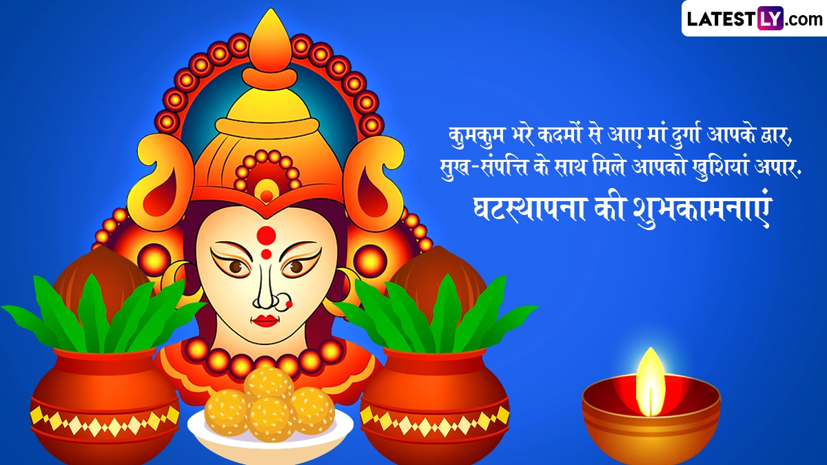 Sharad Navratri Ghatasthapana 2024 Wishes in Hindi: महालया (Mahalaya) के बाद आज यानी 3 अक्टूबर 2024 से शारदीय नवरात्रि (Sharad Navratri) की शुरुआत हो गई है, जिसका समापन 12 अक्टूबर 2024 को विजयादशमी (Vijayadashami) यानी दशहरे (Dussehra) के साथ होगा. हिंदू पंचांग के अनुसार, हर साल अश्विन मास के शुक्ल पक्ष की प्रतिपदा तिथि से शारदीय नवरात्रि की शुरुआत होती है और अश्विन मास के शुक्ल पक्ष की नवमी तिथि को महा नवमी मनाई जाती है, फिर दसवें दिन विजयादशमी का पर्व धूमधाम से मनाया जाता है. ऐसी मान्यता है कि मां दुर्गा का महालया के दिन कैलाश पर्वत से पृथ्वी पर आगमन होता है. ऐसे में नवरात्रि (Navratri) के पहले दिन घटस्थापना (Ghatasthapana) यानी कलश स्थापना (Kalash Sthapana) कर देवी दुर्गा (Maa Durga) का आह्वान किया जाता है, फिर पूरे नौ दिनों तक मां दुर्गा के नौ स्वरूपों की उपासना की जाती है.