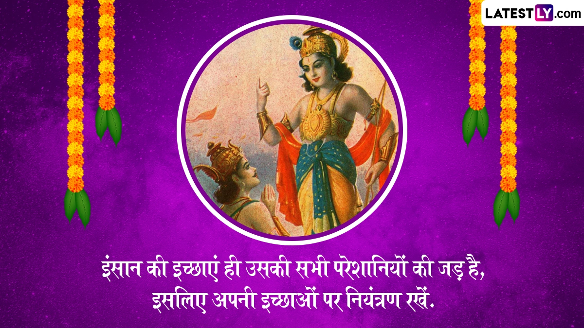 गीता जयंती के दिन लोग गीता का पाठ करते हैं, भजन गाते हैं और भगवान श्रीकृष्ण की पूजा करते हैं. इस पर्व का महत्व इसलिए भी है, क्योंकि यह हमें जीवन की समस्याओं का समाधान बताता है और आध्यात्मिक विकास में सहायक होता है. गीता जयंती के इस पावन अवसर पर आप श्रीमद्भगवत गीता के इन 10 अनमोल उपदेशों को प्रियजनों संग शेयर करके उन्हें इस पर्व की शुभकामनाएं दे सकते हैं.