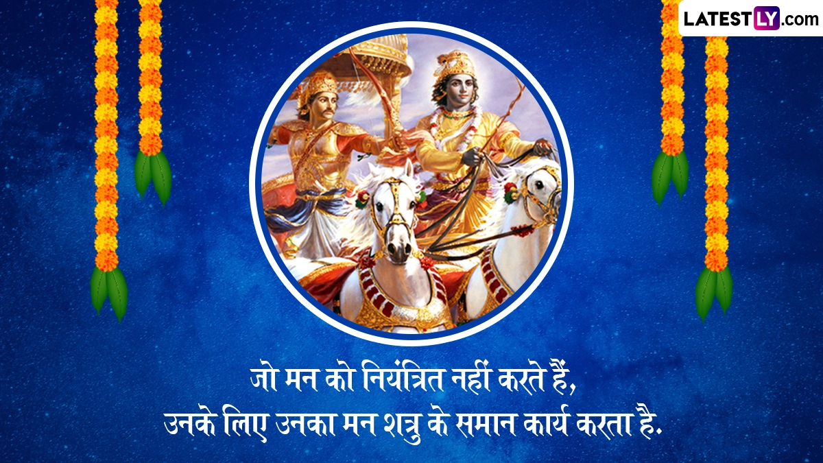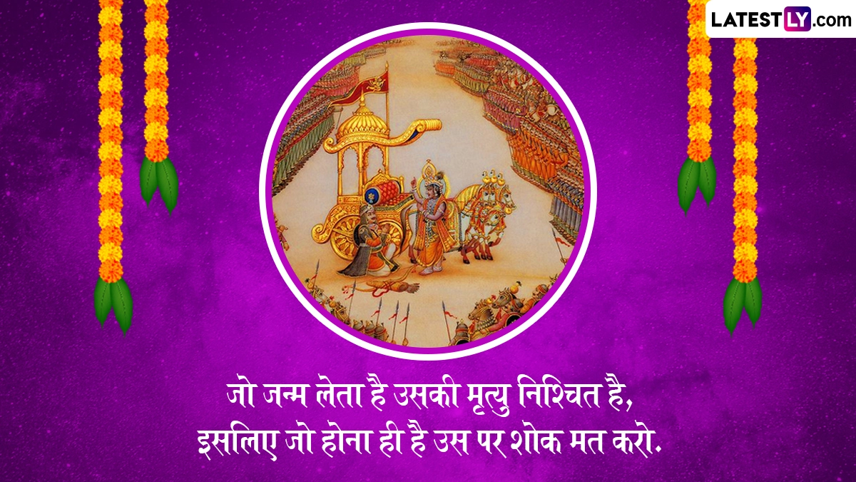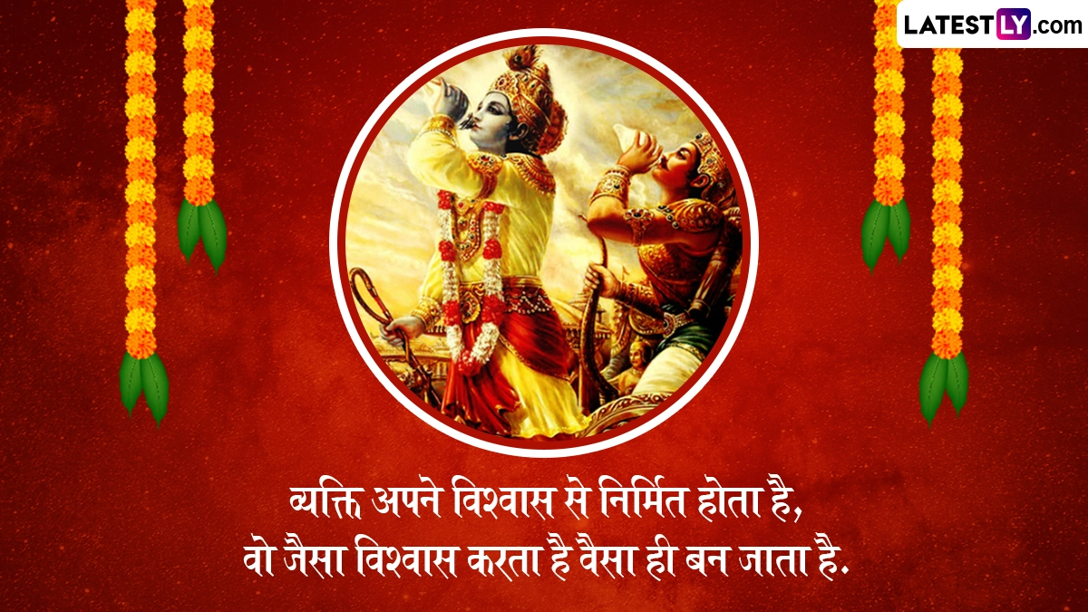 Gita Jayanti 2024 Quotes in Hindi: इस साल गीता जयंती का पर्व 11 दिसंबर 2024 को मनाया जा रहा है, जबकि हिंदू पंचांग के अनुसार, हर साल मार्गशीर्ष मास के शुक्ल पक्ष की एकादशी को गीता जयंती (Gita Jayanti) मनाई जाती है. ऐसी मान्यता है कि द्वापर युग में इसी पावन तिथि पर महाभारत युद्ध से ठीक पहले कुरूक्षेत्र में श्रीकृष्ण ने अर्जुन को भगवत गीता का उपदेश दिया था. इस पवित्र ग्रंथ में कर्मयोग, भक्तियोग और ज्ञानयोग का विस्तृत वर्णन है. यह ग्रंथ न सिर्फ धार्मिक दृष्टिकोण से बल्कि जीवन के हर पहलू में मार्गदर्शन प्रदान करता है. श्रीमद्भगवत गीता (Shrimad Bhagwad Gita) में कुल 18 अध्याय हैं, जिसमें पहले के 6 अध्यायों में कर्मयोग, दूसरे के 6 अध्यायों में ज्ञानयोग और आखिरी के 6 अध्यायों में भक्तियोग के उपदेश दिए गए हैं. इसमें इंसान के जन्म से लेकर मौत तक के चक्र और मृत्यु के बाद के चक्र को विस्तारपूर्वक बताया गया है.