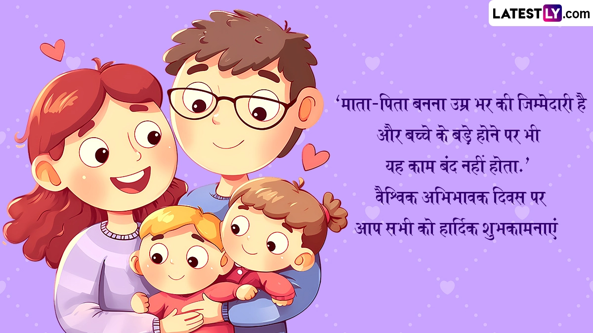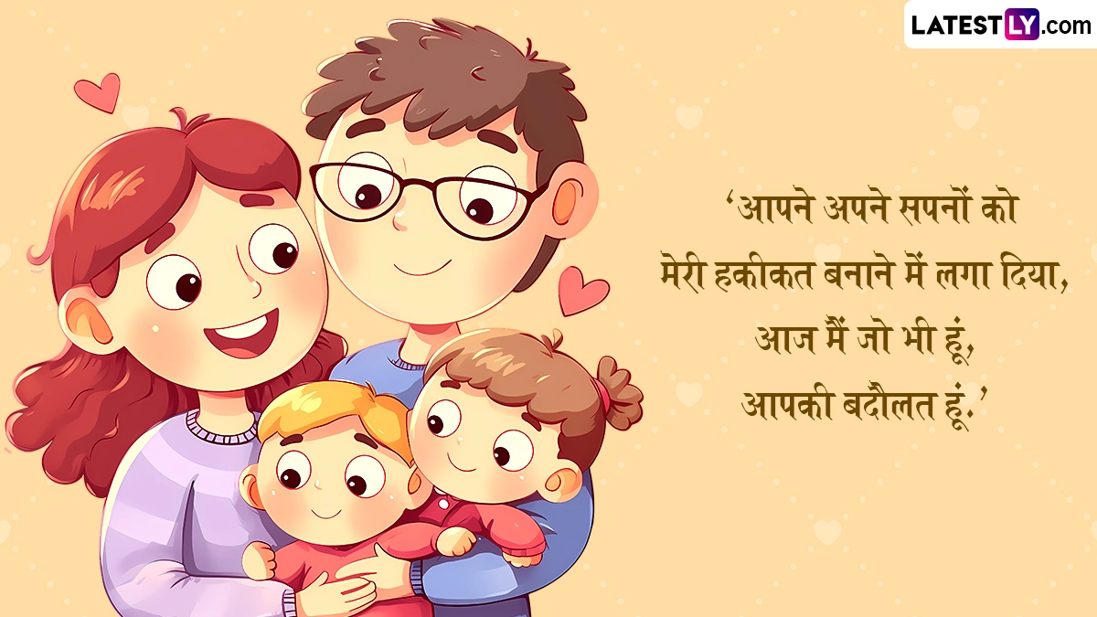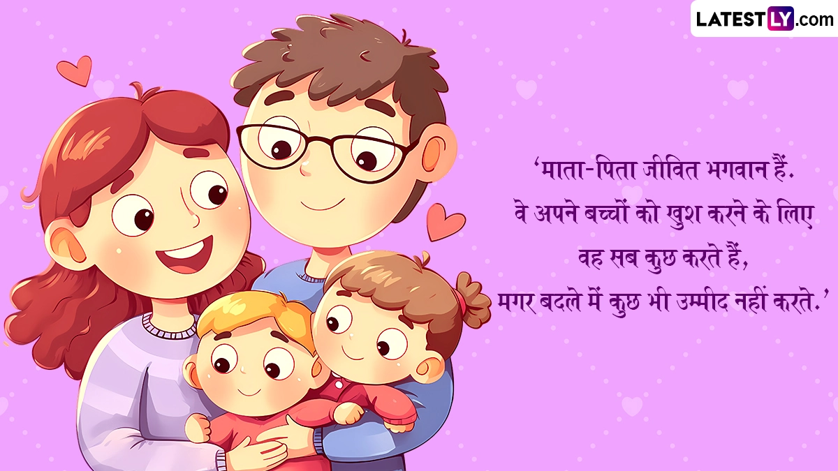 Global Day of Parents 2025 Quotes: अभिभावक (माता-पिता) के बलिदान, प्रेम और योगदान को सम्मानित करने के उद्देश्य से हर वर्ष 1 जून को वैश्विक अभिभावक दिवस यानी ग्लोबल डे ऑफ पैरेंट्स (Global Day of Parents) मनाया जाता है. गौरतलब है कि संयुक्त राष्ट्र महासभा ने (United Nations General Assembly) ने साल 2012 में इस दिन को सेलिब्रेट करने की घोषणा की थी. इसका मुख्य मकसद दुनिया भर में माता-पिता (Mother-Father) की भूमिका को वैश्विक स्तर पर सराहा जाए. उनके लिए विशेष आभार प्रकट किया जाए, उन्हें स्पेशल फील करवाया जाए. इस फीलिंग को हम सोशल मीडिया यानी वॉट्सएप, फेसबुक, इंस्टाग्राम अथवा एक्स पर भेज कर भी इस दिवस को सेलिब्रेट कर सकते हैं. आपकी सुविधा के लिए यहां माता-पिता हेतु दिल को छू लेनेवाले कुछ कोट्स दिये गये हैं. यह भी पढ़ें: National Brother’s Day 2025: राष्ट्रीय भाई दिवस पर अपने भाइयों को ये भावनात्मक कोट्स भेज कर अपनी पुरानी स्मृतियां शेयर करें!