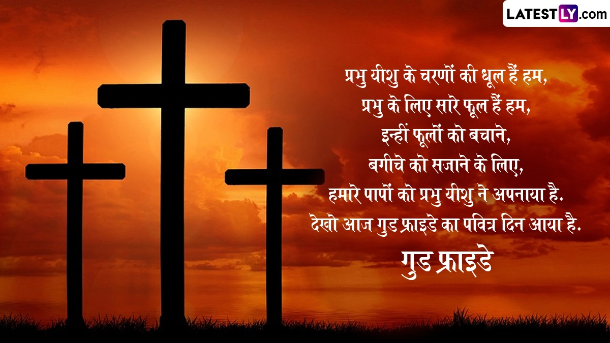 Good Friday 2026 Messages In Hindi: ईसाई धर्म के अनुयायियों के लिए गुड फ्राइडे (Good Friday) एक अत्यंत महत्वपूर्ण और गंभीर दिन है. इस वर्ष 3 अप्रैल 2026 को दुनिया भर में 'गुड फ्राइडे' मनाया जा रहा है, जिसे ब्लैक फ्राइडे (Black Friday), होली फ्राइडे (Holy Friday) और ग्रेट फ्राइडे (Great Friday) के नामों से भी जाना जाता है. यह दिन प्रभु यीशु मसीह (Jesus Christ) की मृत्यु और उन्हें सूली पर चढ़ाए जाने की घटना की याद दिलाता है. मानवता के कल्याण के लिए उनके द्वारा दिए गए सर्वोच्च बलिदान के प्रति सम्मान प्रकट करने के लिए लोग इस दिन को शोक और प्रार्थना के रूप में मनाते हैं.