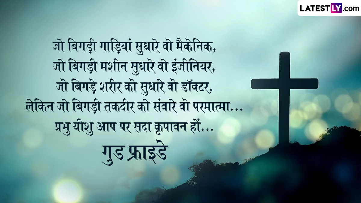 Good Friday 2026 Messages In Hindi: दुनिया भर में ईसाई धर्म के अनुयायियों के लिए गुड फ्राइडे (Good Friday) का दिन अत्यंत महत्वपूर्ण है. इस वर्ष यह दिन 3 अप्रैल 2026 को मनाया जा रहा है. मान्यता है कि ईसा मसीह ने मानवता को सही राह दिखाने और लोगों के पापों के प्रायश्चित के लिए अपना बलिदान दिया था. इसे 'ग्रेट फ्राइडे' (Great Friday), 'ब्लैक फ्राइडे' (Black Friday) और 'होली फ्राइडे' (Holy Friday) के नाम से भी जाना जाता है. इस अवसर पर श्रद्धालु उपवास रखते हैं और प्रार्थना सभाओं के माध्यम से प्रभु यीशु के संदेशों को याद करते हैं.