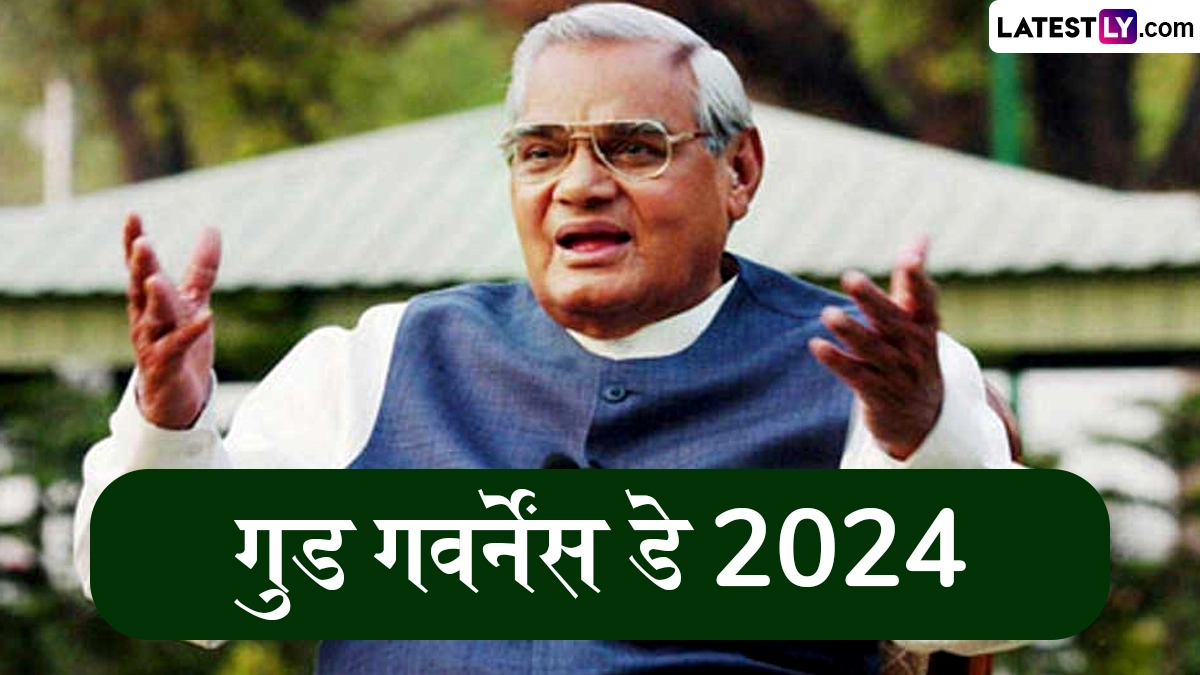 सुशासन सप्ताह 19 दिसंबर 2024 से 25 दिसंबर 2024 तक सुशासन दिवस के रूप में मनाया जाएगा. इसका उद्देश्य भारत में हर स्तर पर सुशासन को आगे बढ़ाना है. विश्व बैंक के अनुसार, सुशासन का अर्थ है "विकास के लिए किसी देश के आर्थिक और सामाजिक संसाधनों के प्रबंधन में शक्ति का प्रयोग करने का तरीका". यह शासन में कानून के शासन, भागीदारी और दक्षता पर जोर देता है. अटल बिहारी वाजपेयी की जयंती पर आप गुड गवर्नेंस डे यानी सुशासन दिवस की शुभकामनाएं देने के लिए दोस्तों-रिश्तेदारों के साथ इन विशेज, वॉट्सऐप स्टिकर्स, जीआईएफ ग्रीटिंग्स, एचडी इमेजेस, वॉलपेपर्स को शेयर कर सकते हैं और पूर्व प्रधानमंत्री को याद कर सकते हैं.