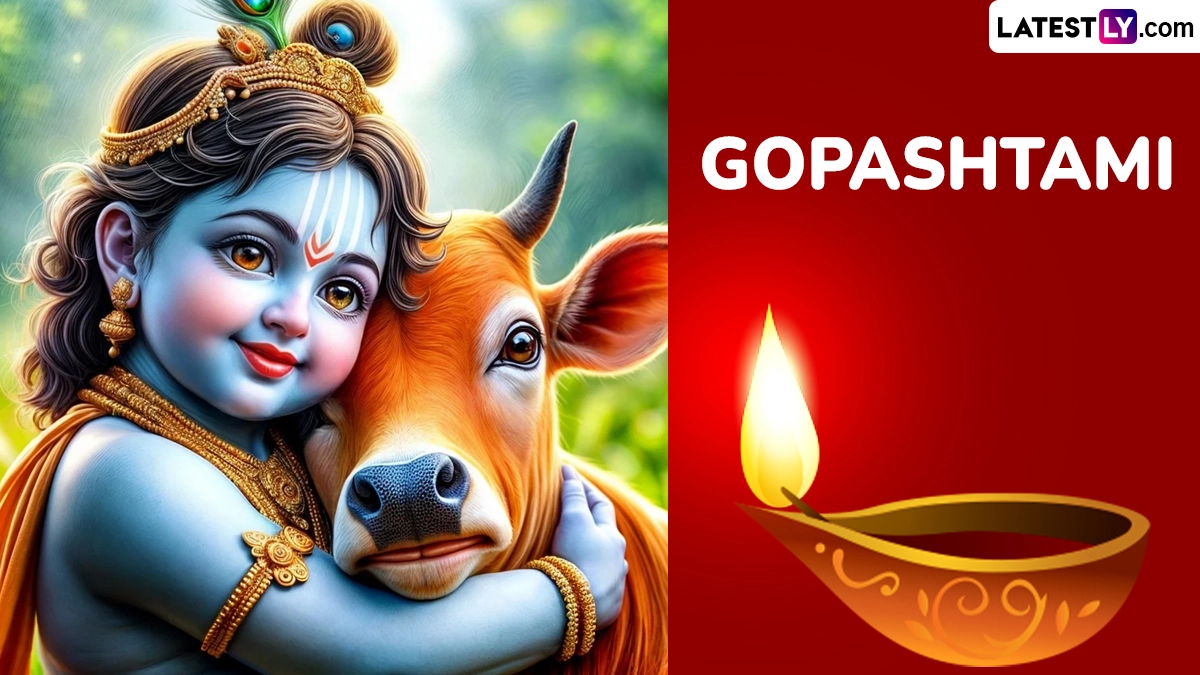 गोपाष्टमी पर गायों और उनके बछड़ों को सजाया जाता है, फिर उनकी पूजा करके सुख-समृद्धि की कामना की जाती है. ऐसी मान्यता है कि इसी दिन भगवान श्रीकृष्ण और बलराम ने गौ चरण की लीला शुरु की थी. गोपाष्टमी पर गायों और बछड़ों की पूजा करने के अलावा आप भगवान श्रीकृष्ण के इन मनमोहक विशेज, एचडी इमेजेस, जीआईएफ ग्रीटिंग्स, वॉट्सऐप स्टिकर्स और वॉलपेपर्स को भेजकर अपनों को पर्व की शुभकामनाएं दे सकते हैं.