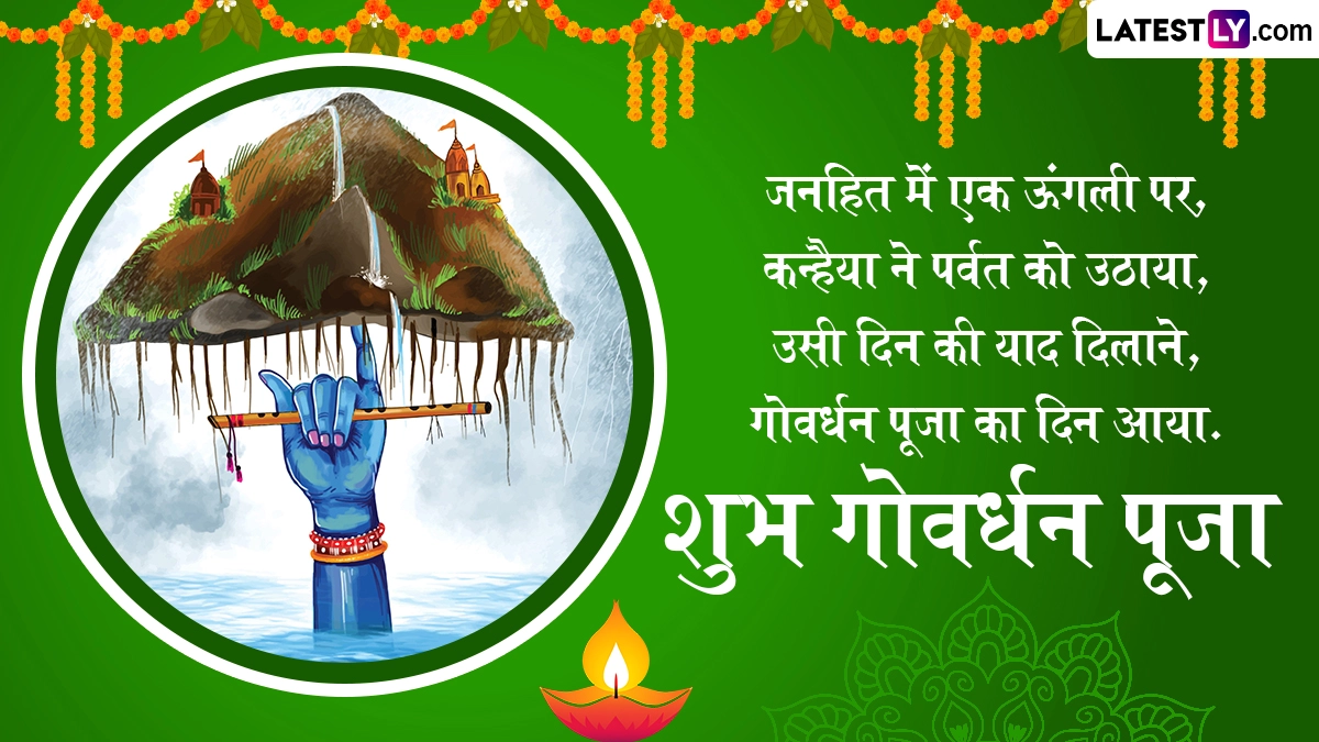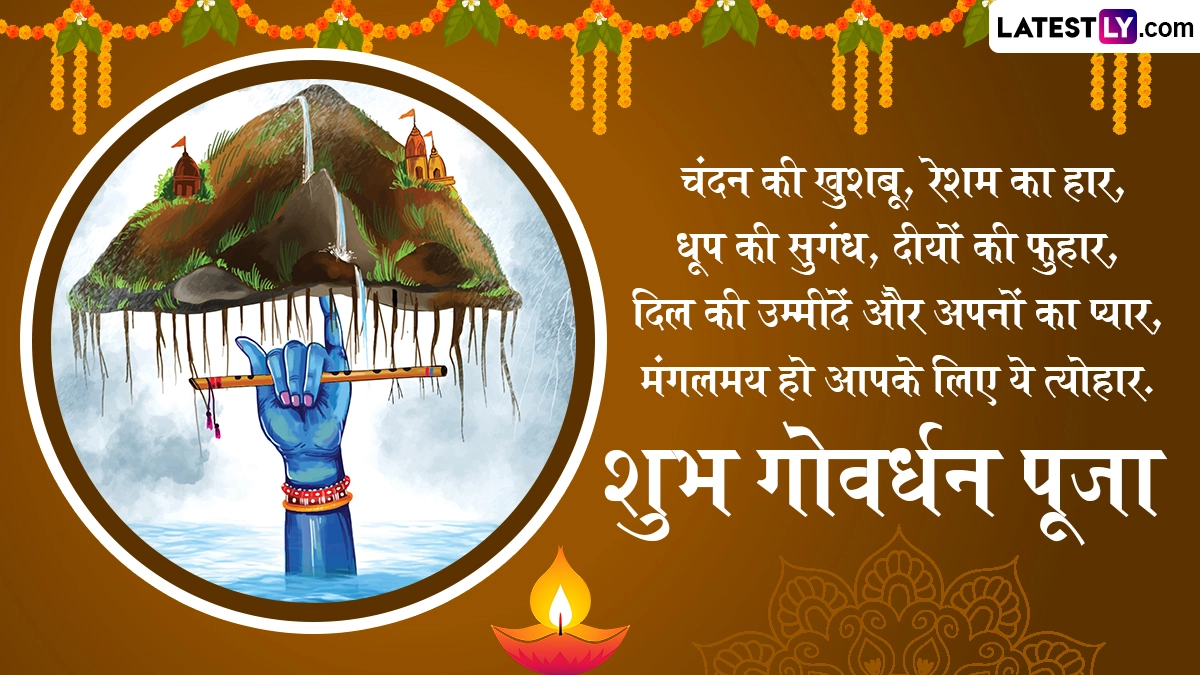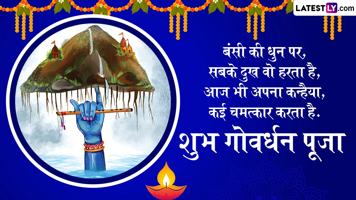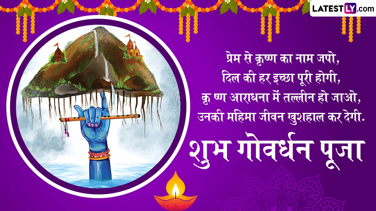 हिंदू धर्म के लिए इस त्यौहार का बहुत महत्व है. इस दिन भक्त भगवान श्री कृष्ण, गोवर्धन पर्वत और गाय की पूजा करते हैं. गोवर्धन पूजा भगवान कृष्ण को समर्पित त्यौहार है, साथ ही प्रकृति माता के प्रति सम्मान और प्रशंसा व्यक्त करने का त्यौहार भी है. इस दिन, भक्तों को गोवर्धन पर्वत और भगवान कृष्ण की पसंदीदा गायों की पूजा करने पर भगवान कृष्ण का आशीर्वाद प्राप्त होता है. गोवर्धन पूजा के इस बेहद खास अवसर पर आप इन हिंदी मैसेजेस, वॉट्सऐप स्टिकर्स, जीआईएफ ग्रीटिंग्स, कोट्स और एचडी इमेजेस को भेजकर अपनों से हैप्पी गोवर्धन पूजा कर सकते हैं.