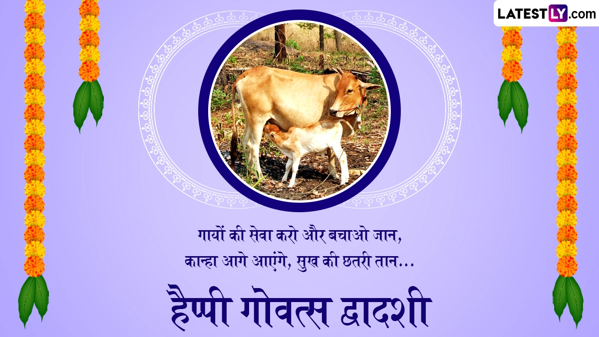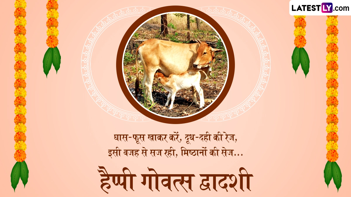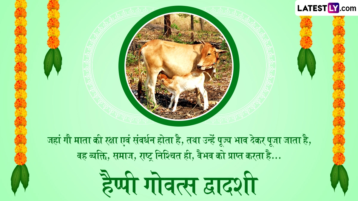 गोवत्स द्वादशी यानी बछ बारस पर गायों और बछड़ों की विशेष पूजा-अर्चना की जाती है, साथ ही उनके प्रति प्यार और सम्मान जाहिर किया जाता है. धनतेरस से एक दिन पहले मनाए जाने वाले इस पर्व की लोग शुभकामना संदेश भेजते हैं. ऐसे में आप भी इस खास अवसर पर इन हिंदी मैसेजेस, कोट्स, वॉट्सऐप विशेज, जीआईएफ ग्रीटिंग्स और फोटो एसएमएस को भेजकर अपनों से हैप्पी गोवत्स द्वादशी कह सकते हैं.