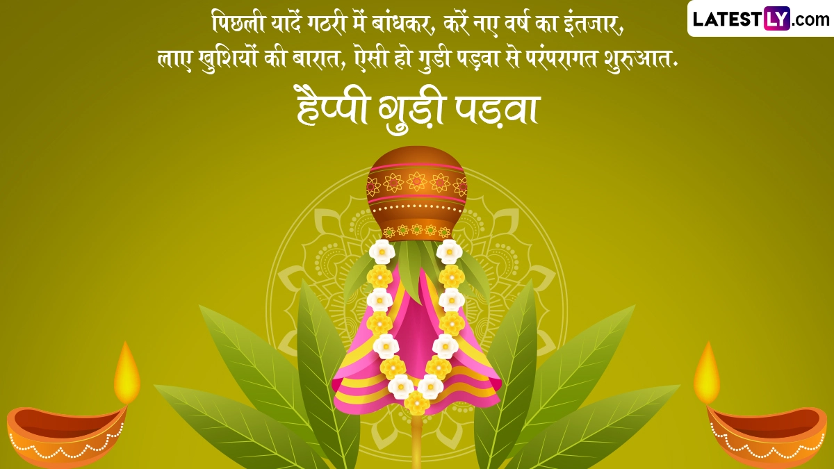 गुड़ी पड़वा के दिन महिलाएं और पुरुष पारंपरिक कपड़े पहनकर घर के आगे एक गुड़ी यानी झंडा रखते हैं. इसी में लोटे पर स्वस्तिक चिह्न बनाकर उस पर रेशम का कपड़ा लपेटा जाता है और गुड़ी को विजय का प्रतीक मानकर उसकी पूजा की जाती है, साथ ही शुभकामना संदेश शेयर किए जाते हैं. ऐसे में इस अवसर पर इन हिंदी मैसेजेस, शायरी, वॉट्सऐप विशेज, जीआईएफ ग्रीटिंग्स, फोटो एसएमएस के जरिए दोस्तों-रिश्तेदारों को हैप्पी गुड़ी पड़वा कह सकते हैं.