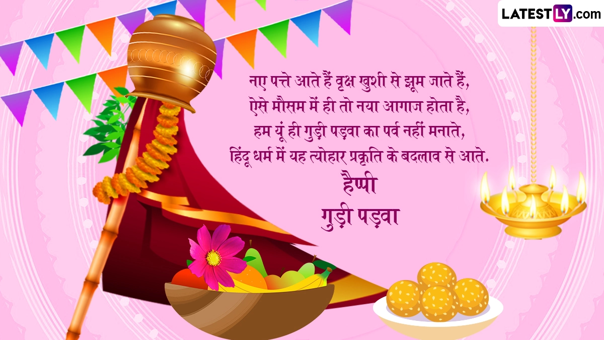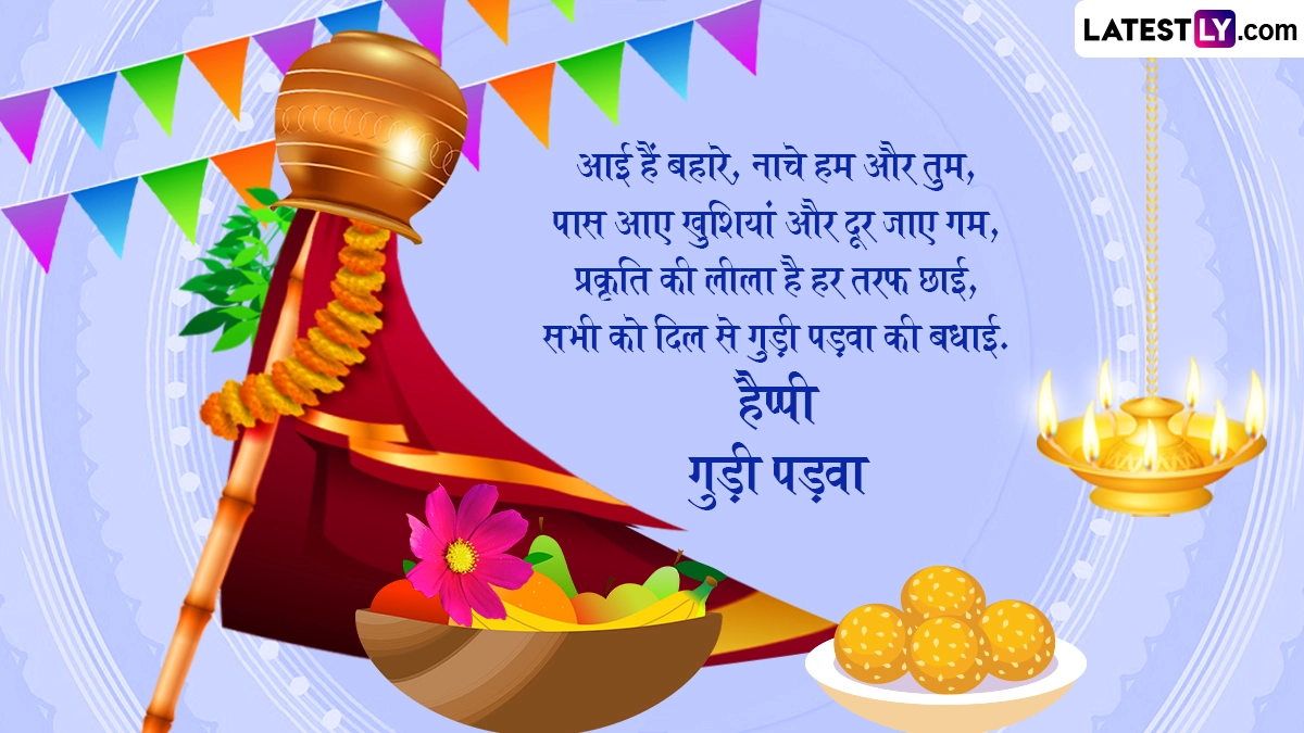 Gudi Padwa 2025 Messages in Hindi: महाराष्ट्र में गुड़ी पड़वा (Gudi Padwa) के त्योहार को बहुत धूमधाम से मनाया जाता है, लेकिन महाराष्ट्र के अलावा इस पर्व को गोवा, आंध्र प्रदेश, कर्नाटक और तेलंगाना में भी हर्षोल्लास के साथ सेलिब्रेट किया जाता है. इस साल 30 मार्च 2025 को गुड़ी पड़वा का पर्व मनाया जा रहा है, जबकि हिंदू पंचांग के अनुसार, हर साल चैत्र मास के शुक्ल पक्ष की प्रतिपदा तिथि को गुड़ी पड़वा का त्योहार मनाया जाता है, जो हिंदू नव वर्ष (Hindu New Year) की शुरुआत का भी प्रतीक है. इसके साथ ही इस तिथि से मां दुर्गा (Maa Durga) की उपासना के नौ दिवसीय पर्व चैत्र नवरात्रि (Chaitra Navratri) की भी शुरुआत होती है. इस दिन लोग अपने घरों के बाहर समृद्धि और विजय के प्रतीक के तौर पर गुड़ी लगाते हैं और उसकी पूजा करके इस पर्व मनाते हैं. ऐसी मान्यता है कि यह परंपरा पूरे साल घर-परिवार के लोगों के लिए खुशियां, सफलता और समृद्धि लेकर आती है.