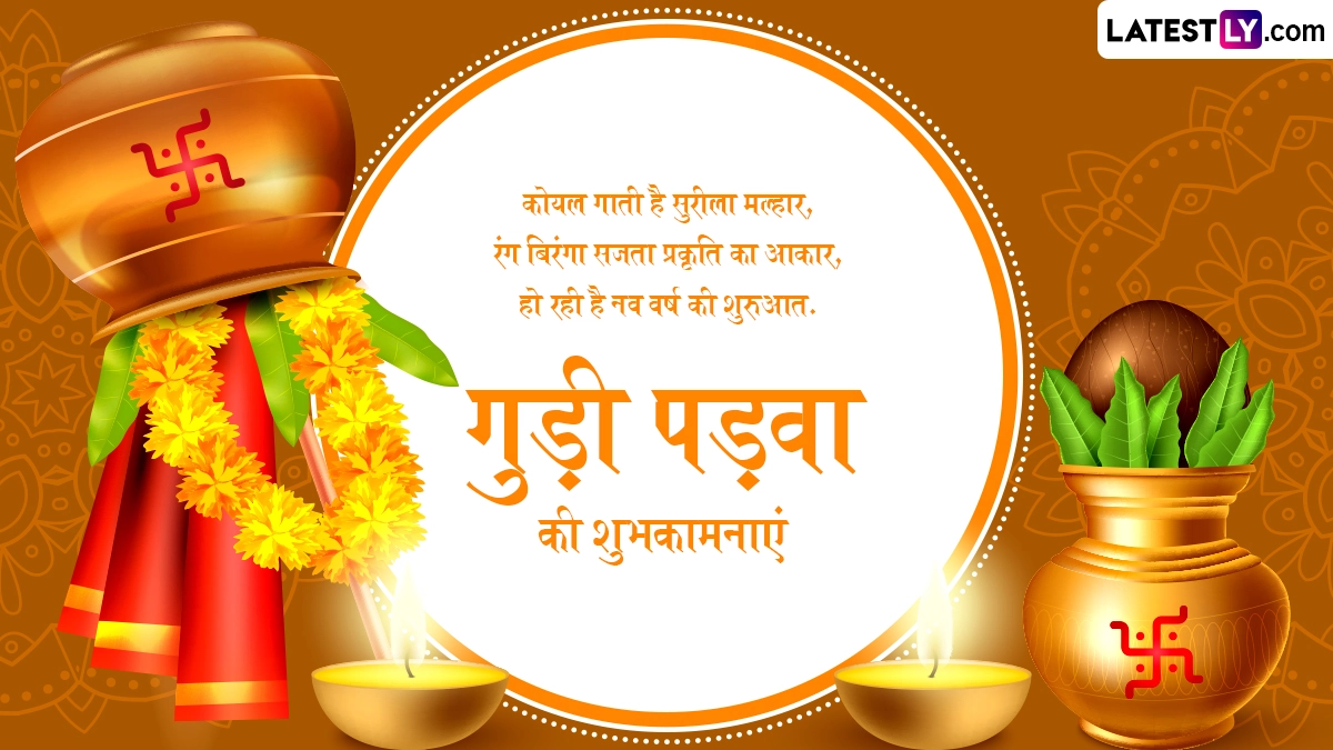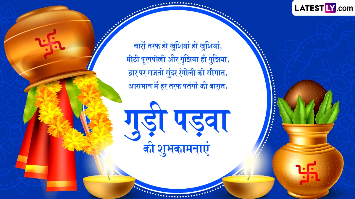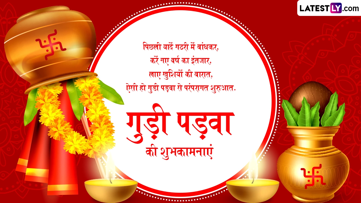 महाराष्ट्र में हिंदू नववर्ष को 'गुड़ी पड़वा' कहा जाता है, वहीं दक्षिण भारत के राज्यों में इसे 'उगादी' के नाम से जाना जाता है. इस दिन पारंपरिक व्यंजन जैसे 'पूरन पोली' और नीम-मिश्री का प्रसाद बनाया जाता है, साथ ही शुभकामना संदेश शेयर किए जाते हैं. ऐसे में आप भी इन शानदार हिंदी विशेज, कोट्स, वॉट्सऐप मैसेजेस, फेसबुक ग्रीटिंग्स के जरिए अपनों को गुड़ी पड़वा की शुभकामनाएं दे सकते हैं.
