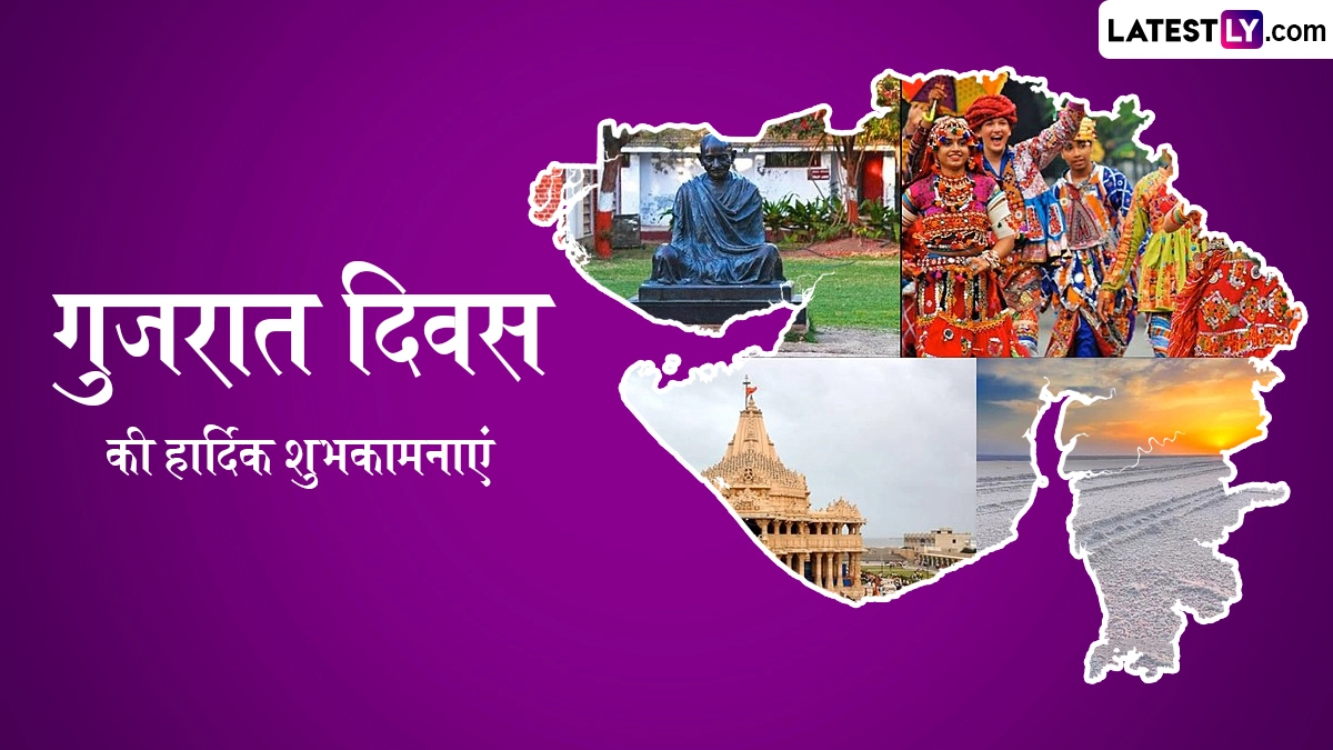 गुजरात अपने राज्य स्थापना दिवस को बहुत धूमधाम से मनाता है. इस खास दिन को सेलिब्रेट करने के लिए राज्य में भव्य परेड, विभिन्न सांस्कृतिक कार्यक्रम आयोजित किए जाते हैं, ताकि लोगों को राज्य की संस्कृति, परंपरा और गौरवशाली इतिहास से रूबरू कराया जा सके. इसके साथ ही शुभकामना संदेशों का आदान-प्रदान किया जाता है. ऐसे में आप भी इन शानदार विशेज, वॉट्सऐप स्टिकर्स, एचडी इमेजेस, जीआईएफ ग्रीटिंग्स, वॉलपेपर्स के जरिए अपनों से हैप्पी गुजरात दिवस कह सकते हैं.