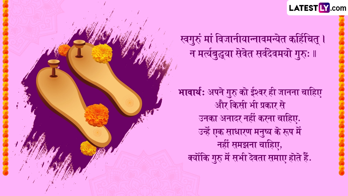 गुरु पूर्णिमा के दिन सुबह स्नान करके स्वच्छ वस्त्र धारण करने के बाद पूजा स्थल पर विराजित सभी देवी-देवताओं को प्रणाम करना चाहिए. गुरु के अलावा इस दिन भगवान विष्णु और माता लक्ष्मी की पूजा की जाती है, इसके साथ की शुभकामना संदेश शेयर किए जाते हैं. इस अवसर पर आप इन विशेज, श्लोक, वॉट्सऐप मैसेजेस, फेसबुक ग्रीटिंग्स के जरिए संस्कृत में शुभ गुरु पूर्णिमा कहकर बधाई दे सकते हैं.