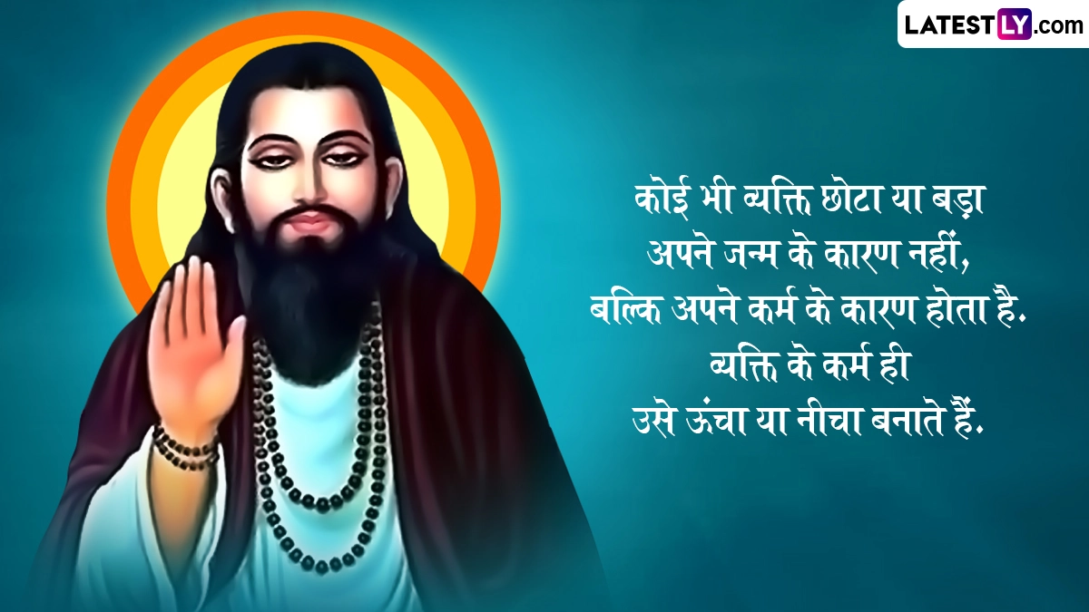 Guru Ravidas Jayanti 2024 Quotes in Hindi: देश के महान संतों में शुमार गुरु रविदास (Guru Ravidas) को महान संत, दर्शनशास्त्री, कवि, समाज सुधारक और ईश्वर के अनुयायी के तौर पर जाना जाता है. आज यानी 24 फरवरी 2024 को गुरु रविदास जी की जयंती (Guru Ravidas Jayanti) मनाई जा रही है. उनके द्वारा कहा गया कथन 'मन चंगा तो कठौती में गंगा' आज भी सबसे ज्यादा लोकप्रिय है. हिंदू पंचांग के अनुसार, रविदास जी का जन्म 1398 ईस्वी में माघ पूर्णिमा के दिन उत्तर प्रदेश (Uttar Pradesh) के वाराणसी (Varanasi) स्थित गोवर्धनपुर गांव में हुआ था. रविदास जी का जन्म ऐसे समय में हुआ था, जब उत्तर भारत के कुछ क्षेत्रों में मुगलों का राज हुआ करता था. उस दौरान हर तरफ अत्याचार, सामाजिक भेदभाव और भ्रष्टाचार के चलते हाहाकार मचा हुआ था. ऐसे में उन्होंने अपना जीवन प्रभु की भक्ति और सत्संग में बिताते हुए लोगों के बीच भेदभाव को दूर करते हुए सामाजिक एकता का प्रचार-प्रसार किया.