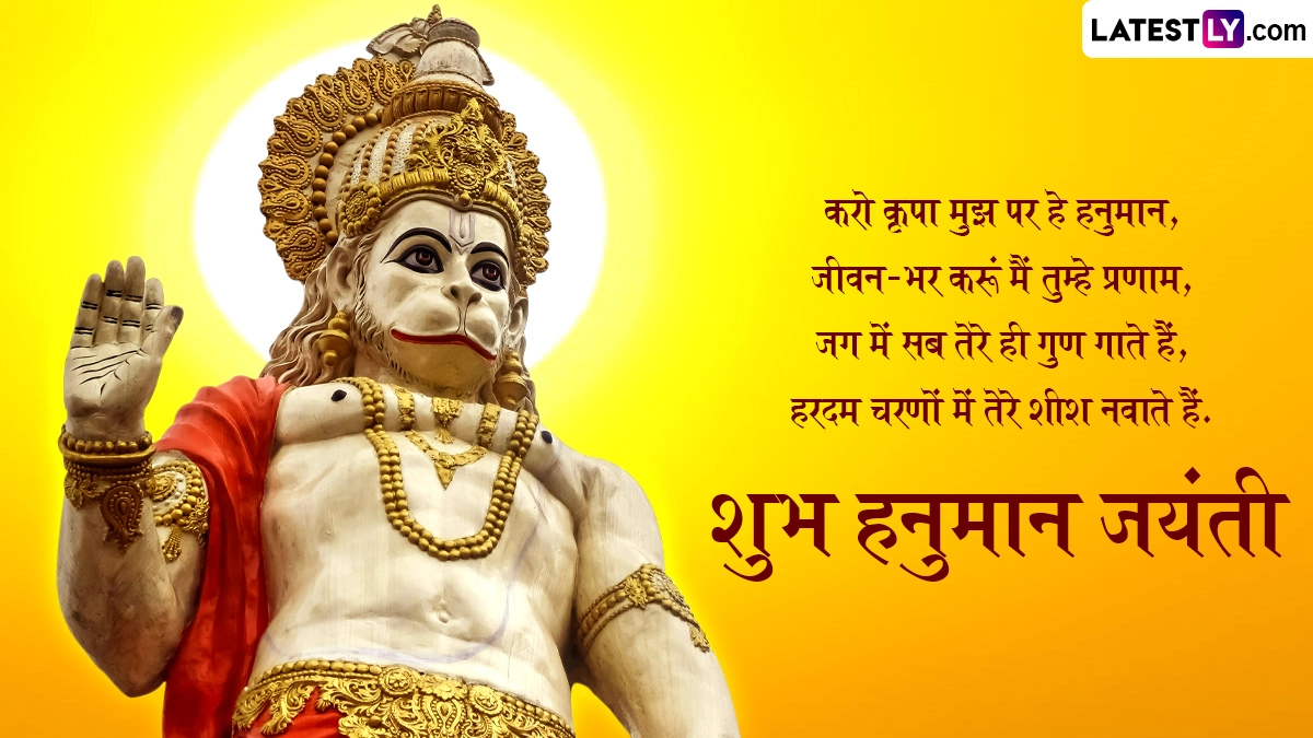 हनुमान जयंती के दिन बजरंगबली के भक्त व्रत रखते हैं और विधि-विधान से उनकी उपासना करते हैं. पूजन के दौरान भक्त बजरंगबली से अपने जीवन के संकटों को दूर करने की कामना करते हैं, साथ ही शुभकामना संदेशों का आदान-प्रदान करते हैं. ऐसे में इस खास अवसर पर आप इन भक्तिमय हिंदी विशेज, कोट्स, वॉट्सऐप मैसेजेस, फेसबुक ग्रीटिंग्स को भेजकर अपनों को हनुमान जयंती की शुभकामनाएं दे सकते हैं.