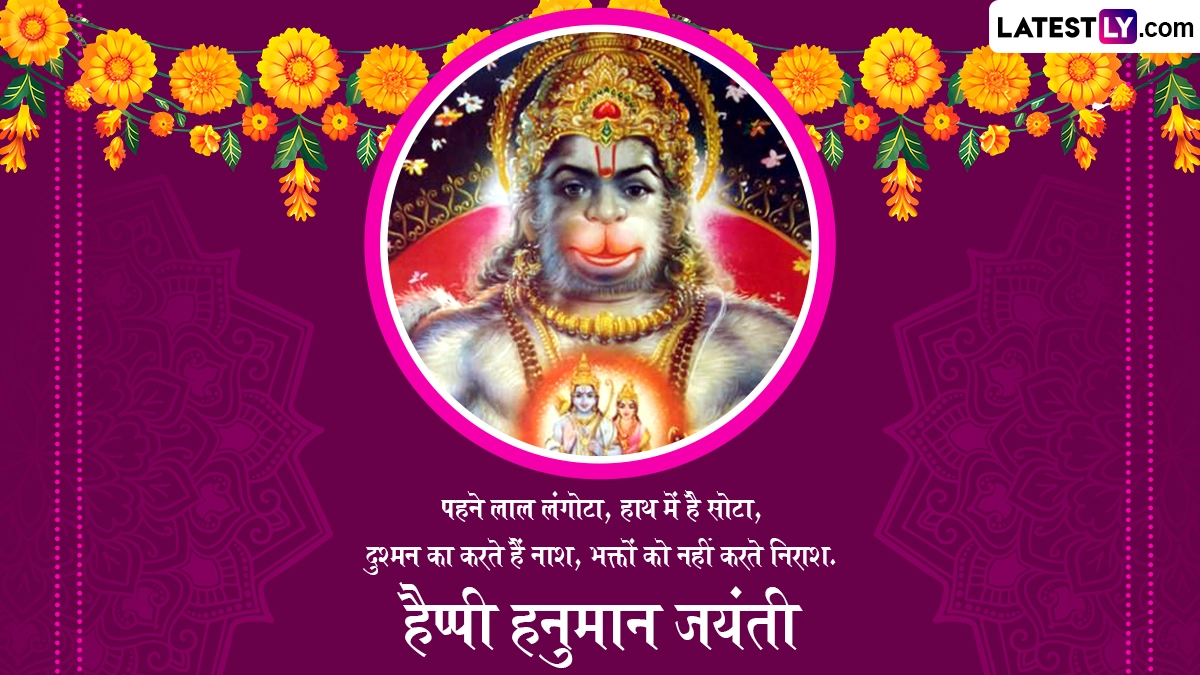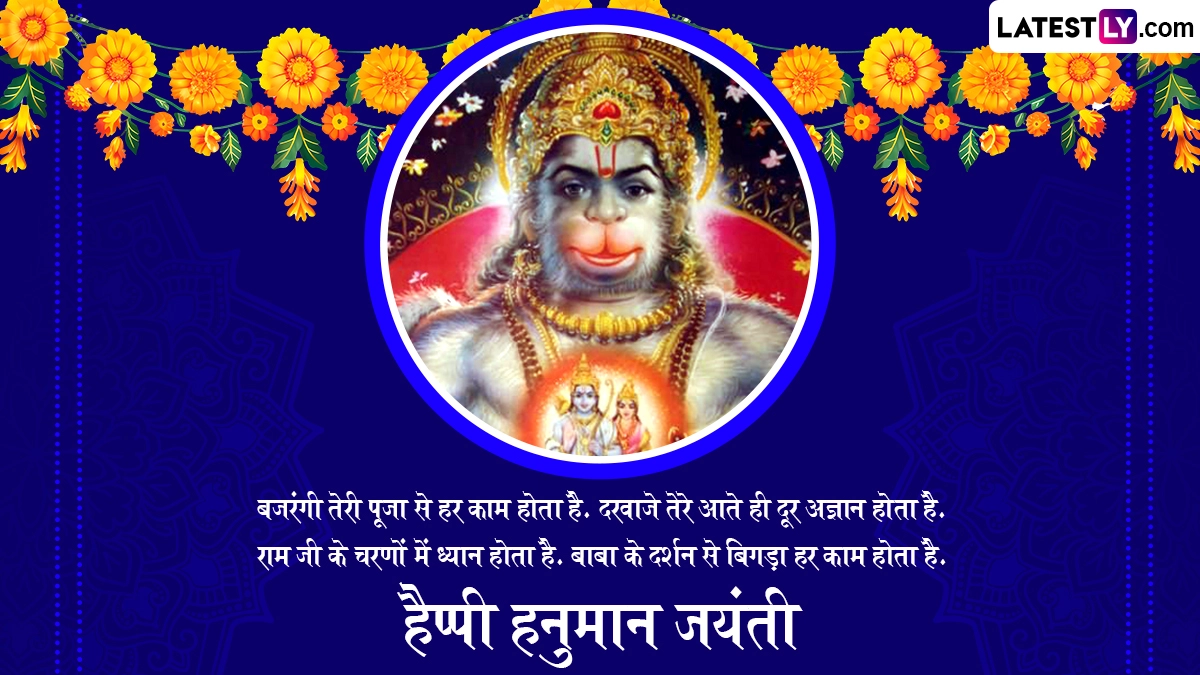 अपने जीवन की सभी बाधाओं और संकटो से मुक्ति पाने के लिए अधिकांश लोग बजरंगबली की आराधना करते हैं. इस दिन मंदिरों और घरों में हनुमान चालीसा, बजरंग बाण और सुंदरकांड का पाठ किया जाता है. ऐसी मान्यता है कि हनुमान जी की आराधना से हर मनोकामना पूरी होती है. इस खास अवसर पर आप इन शानदार हिंदी मैसेजेस, वॉट्सऐप विशेज, जीआईएफ ग्रीटिंग्स, फोटो एसएमएस को भेजकर हैप्पी हनुमान जयंती कह सकते हैं.