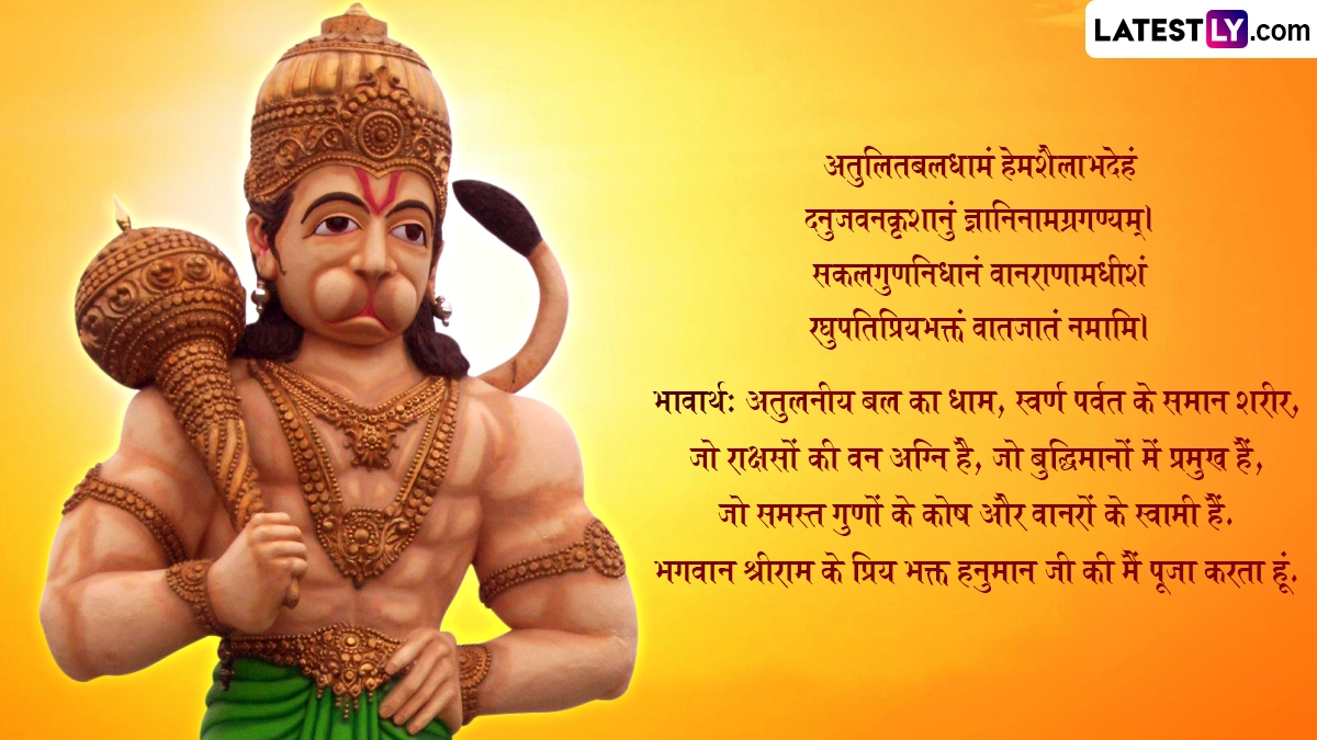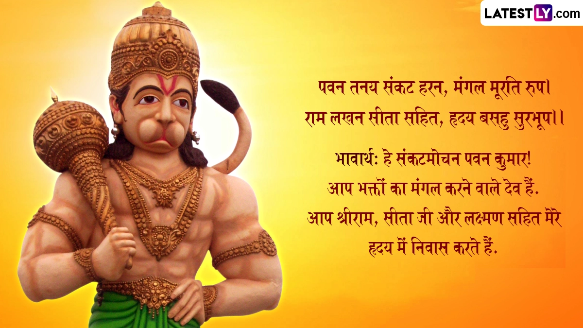 हनुमान जयंती पर देशभर के तमाम हनुमान मंदिरों में रामभक्त हनुमान की विशेष पूजा-अर्चना की जाती है. पवनपुत्र हनुमान की विधिवत पूजा करने के साथ ही लोग हनुमान चालीसा, सुंदरकांड, बजरंगबाण का पाठ और उनके मंत्रों का जप करते हैं. इसके साथ ही आप इस शुभ अवसर पर संस्कृत के इन विशेज, श्लोक, मंत्र, वॉट्सऐप मैसेजेस, जीआईएफ ग्रीटिंग्स के जरिए प्रिजयनों को हनुमान जयन्त्यां शुभं भवतु! कहकर बधाई दे सकते हैं.