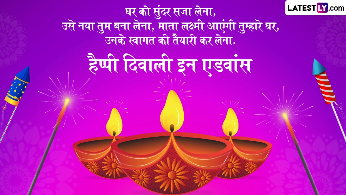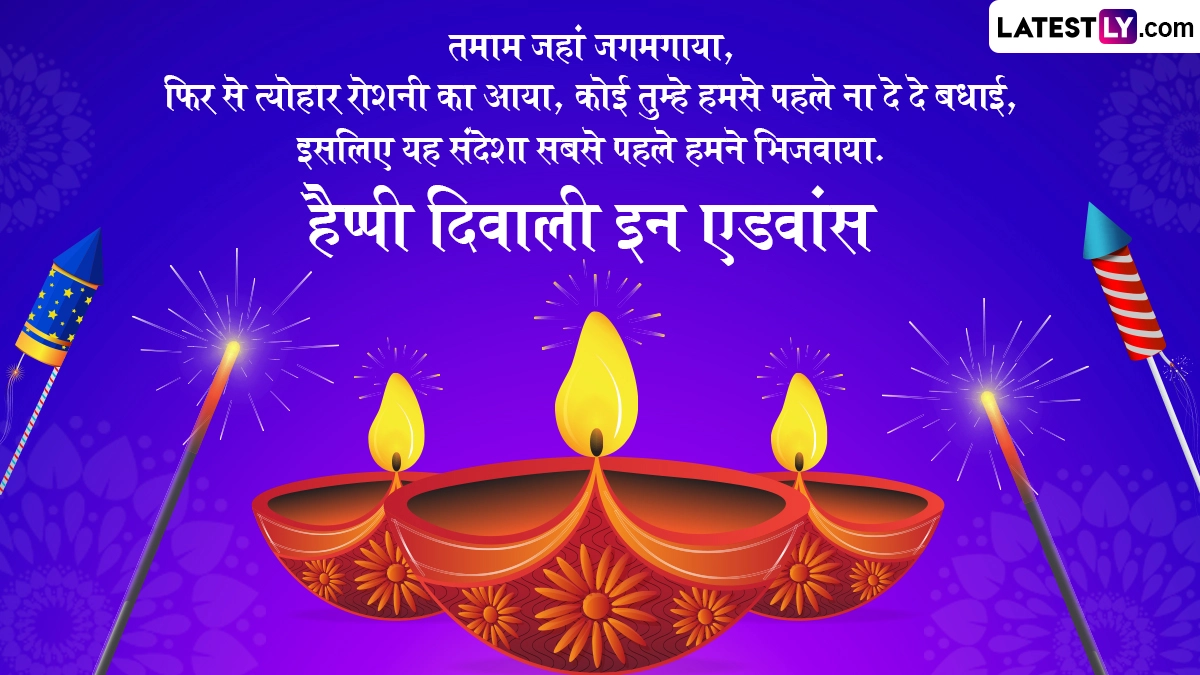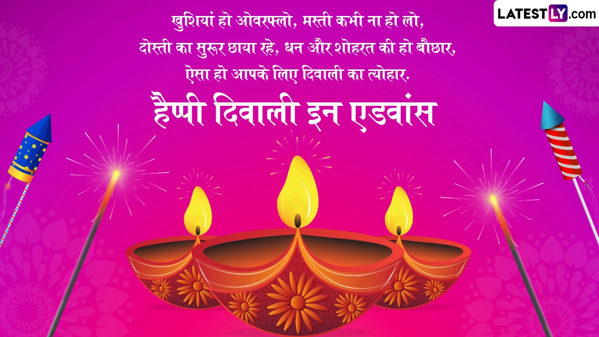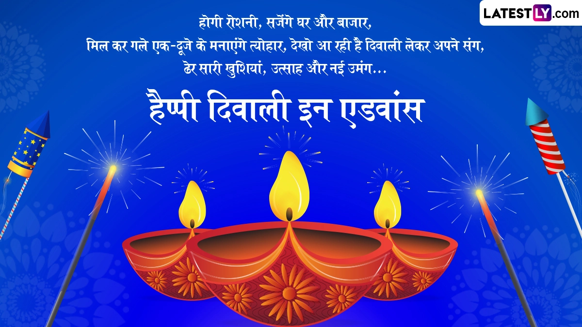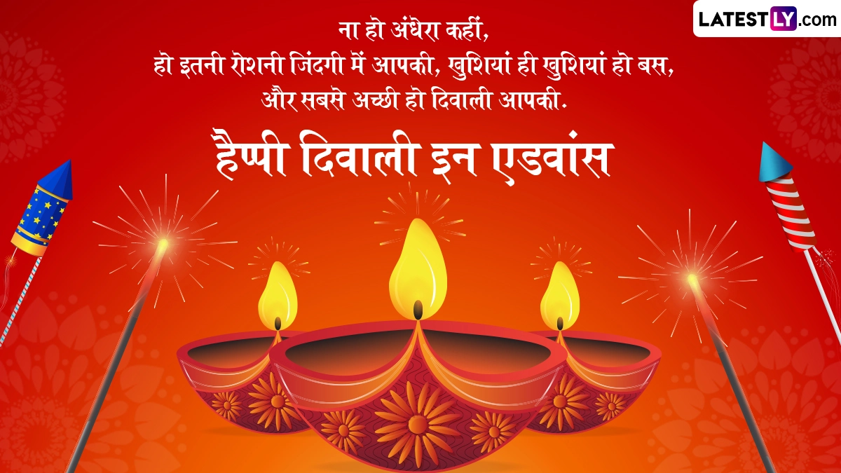 Happy Diwali in Advance 2025 Wishes in Hindi: हिंदू धर्म में साल भर में कई महत्वपूर्ण व्रत और त्योहार सेलिब्रेट किए जाते हैं, जिनमें से दिवाली का विशेष महत्व बताया जाता है. अंधकार पर प्रकाश और बुराई पर अच्छाई की जीत के प्रतीक के तौर पर मनाए जाने वाले पांच दिवसीय दिवाली (Diwali) उत्सव का हर किसी को बेसब्री से इंतजार रहता है. दिवाली उत्सव (Diwali Festival) की शुरुआत धनतेरस (Dhanteras) के साथ होती है और इसका समापन भाई दूज (Bhai Dooj) के साथ होता है. इस साल दिवाली की शुरुआत 18 अक्टूबर 2025 से हो रही है और समापन 23 अक्टूबर 2025 को होगा. पांच दिवसीय दिवाली उत्सव के दौरान हर एक दिन खास होता है, लेकिन इसके तीसरे दिन यानी कार्तिक अमावस्या को दीपावली मनाई जाती है. इस दिन भक्त विधि-विधान से मां लक्ष्मी की पूजा करते हैं. लक्ष्मी पूजन का दिन इस पांच दिवसीय दिवाली उत्सव का सबसे अहम दिन होता है.