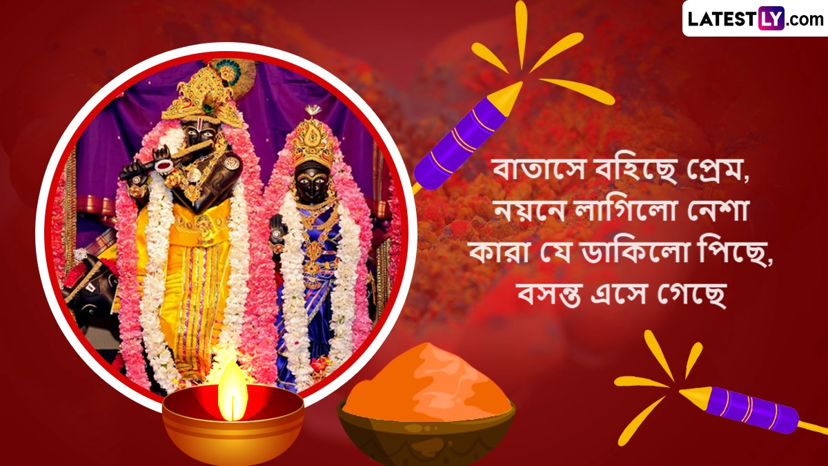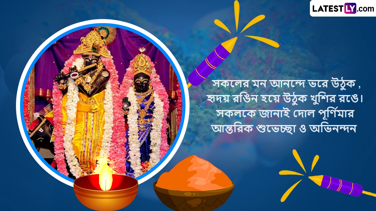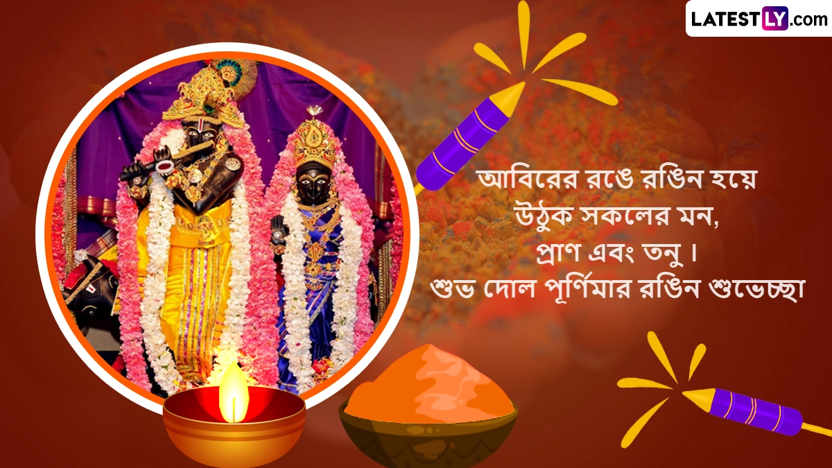 Dol Purnima 2024 Wishes in Bangla: पश्चिम बंगाल (West Bengal), असम (Assam) और ओडिशा (Odisha) में डोल पूर्णिमा (Dol Purnima) के पर्व को बहुत धूमधाम से मनाया जाता है, जिसे डोलयात्रा के नाम से भी जाना जाता है. यह पर्व भगवान श्रीकृष्ण (Bhagwan Shri Krishna) और राधा रानी (Radha Rani) के प्रेम को समर्पित पर्व है. हिंदू पंचांग के अनुसार, हर साल फाल्गुन मास की पूर्णिमा तिथि को डोल पूर्णिमा यानी डोलयात्रा (Dol Yatra) का त्योहार मनाया जाता है. इस दिन राधा कृष्ण की पूजा की जाती है और भजन-कीर्तन किए जाते हैं. इसी दिन रंगो वाली होली (Holi) का त्योहार भी मनाया जाता है और रंग-गुलाल से लोग होली खेलते हैं. इस साल उदयातिथि के अनुसार, डोल पूर्णिमा 25 मार्च 2024 को मनाई जा रही है.