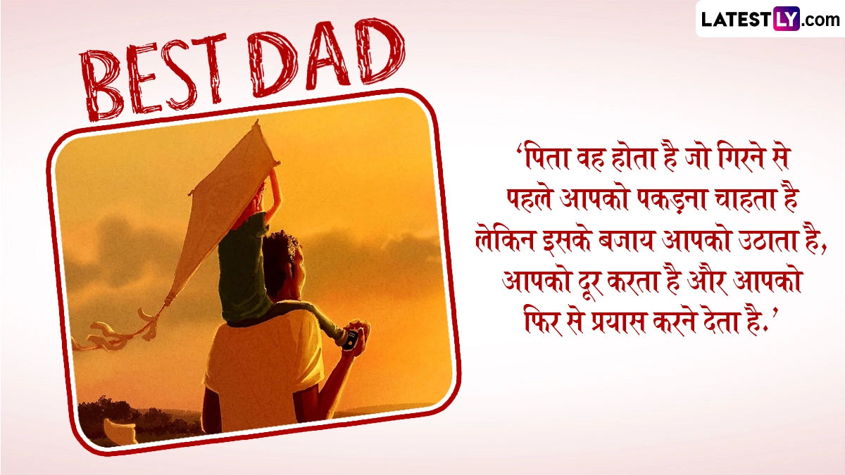 Happy Father's Day 2025 Quotes in Hindi: हर बच्चे के जीवन में माता-पिता का विशेष महत्व होता है. एक बच्चे के जीवन में पिता क्या है? कुछ के लिए वह रोल मॉडल तो कुछ के लिए दोस्त तो कुछ के लिए मार्गदर्शन. हर किसी की जिंदगी में पिता की अलग और विशेष अहमियत होती है. बेटा पापा का सहारा होते हैं तो बेटी उनकी परी होती हैं. पिता के त्याग, समर्पण को सम्मान देने के लिए हर साल जून के तीसरे रविवार को पिता दिवस (Father’s Day) मनाया जाता है. इस साल यह विशेष दिवस 15 जून को मनाया जाएगा. इस अवसर पर पिता को विशेष फील कराने के लिए यहां कुछ इमोशनल कोट्स (Father's Day Emotional Quotes) दिये गये हैं, जिसे अपने पिता को भेज कर उन्हें बताएं कि यह दिन आपके लिए कितना खास है. यह भी पढ़ें: Father’s Day 2025: ‘पिता: रिश्तों की वह नींव, जो दिखाई नहीं देती’, लेकिन पुख्ता आत्मविश्वास का अहसास हर पल कराती है!